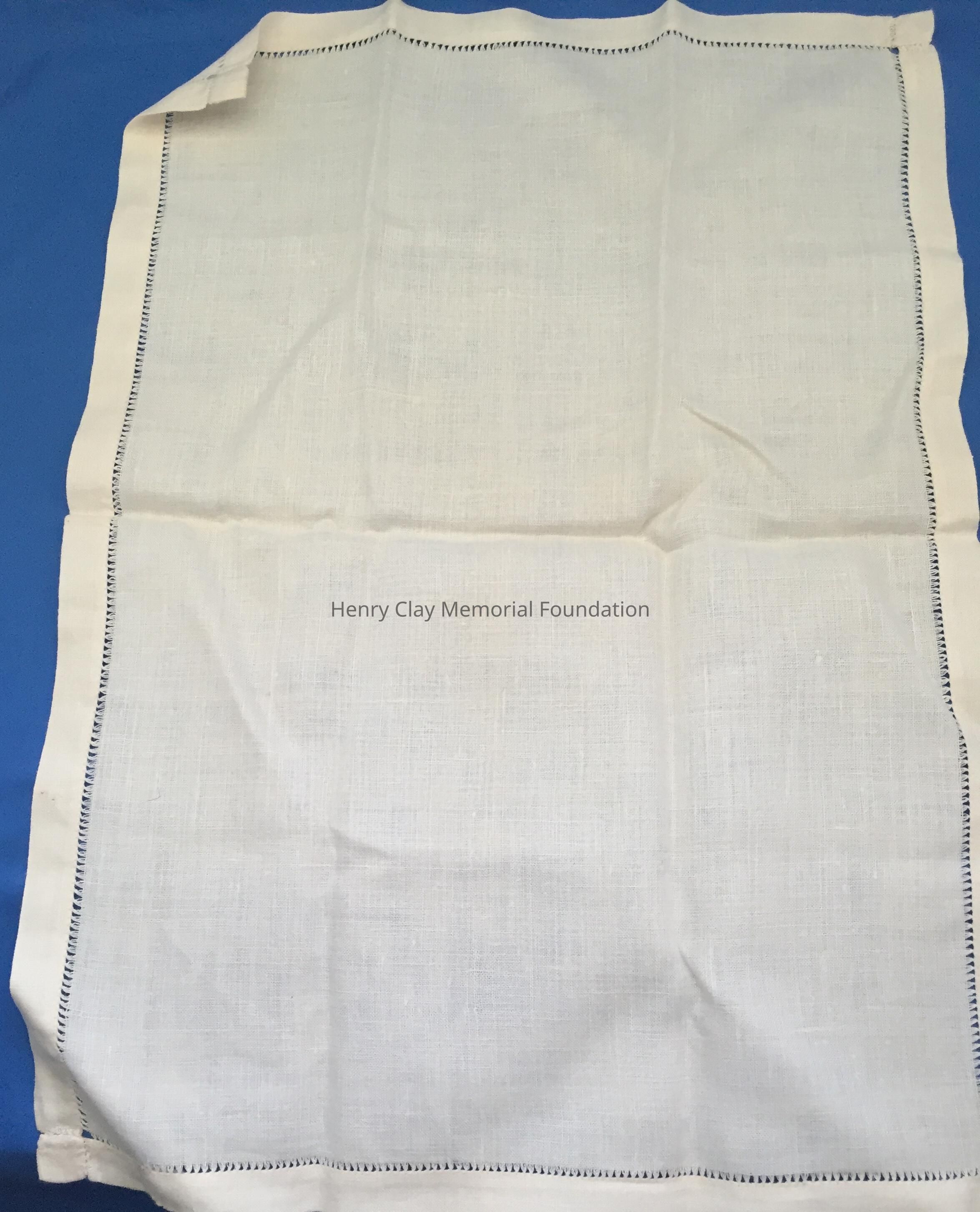 Off-white rectangular mats with a faggoting edge cut open. Edge work all the around. The cut open edge criss-crosses at all four ends.