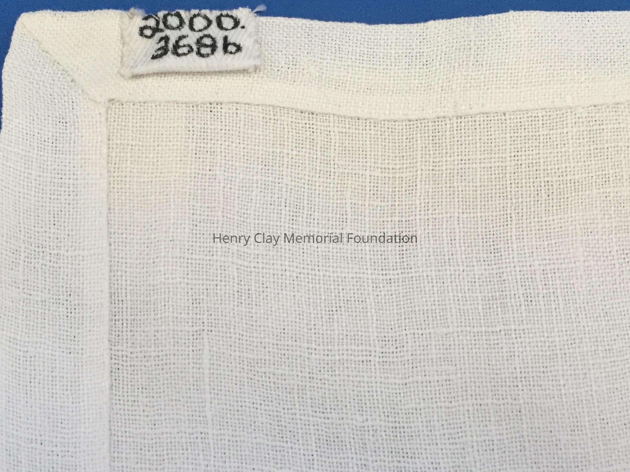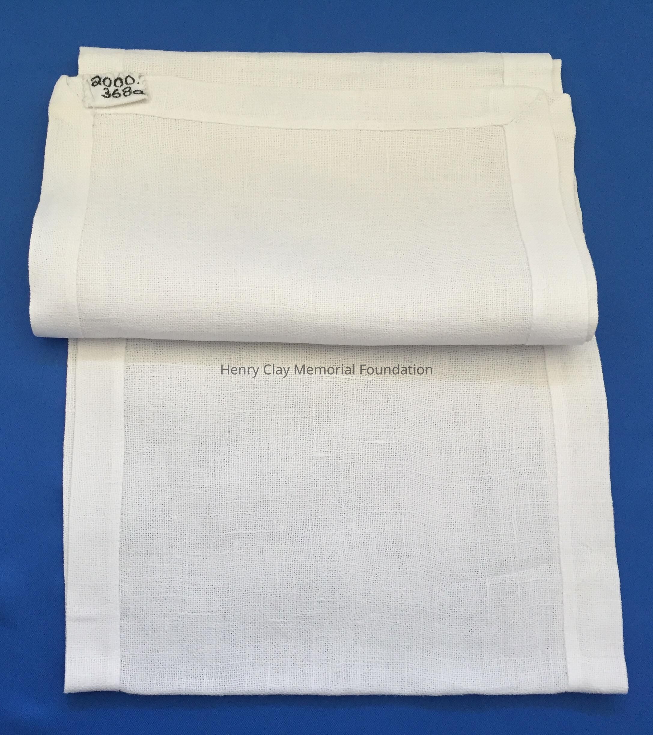 White linen oblong table runners. Hemmed edge all the way around each one. Note on one corner of runner of 'A,' a drop of wax can be seen and felt.Dimensions