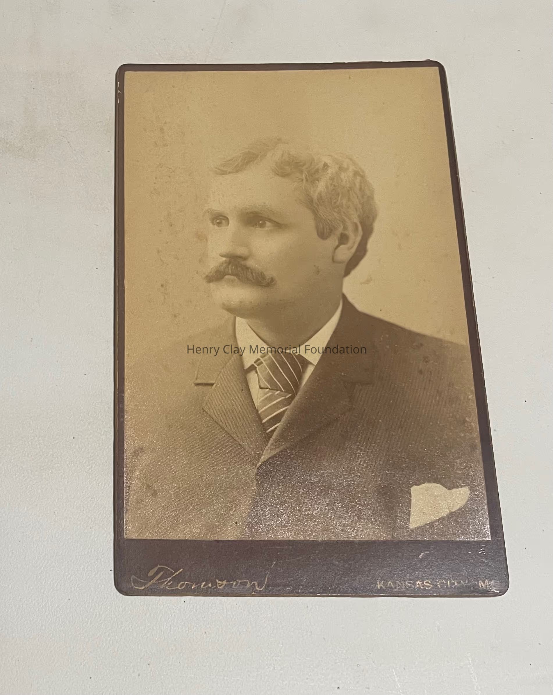 Portrait photo of an unknown young man in a suit. Print is from Thomson Photographer