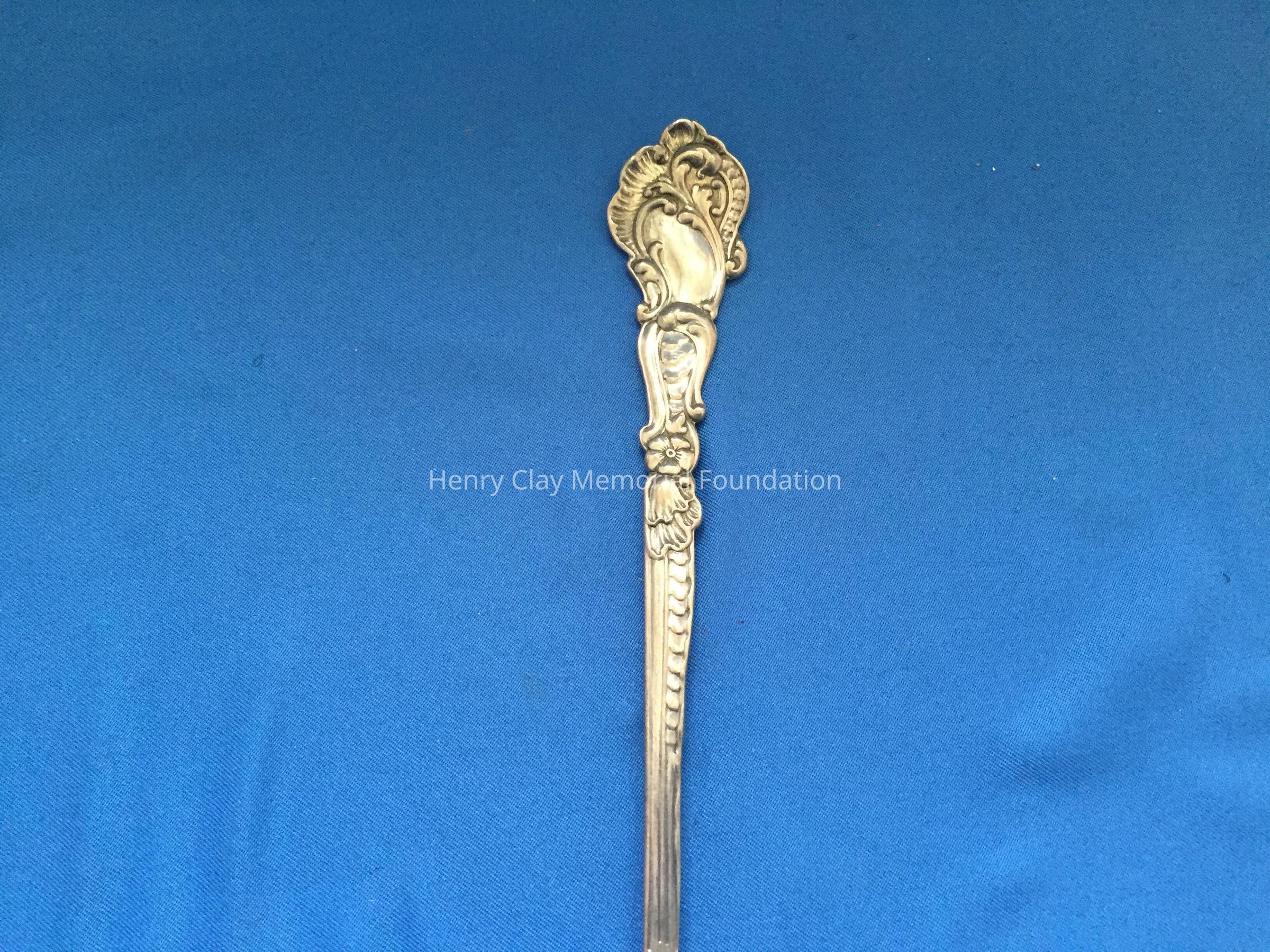 Long, 3-pronged fork with tines bent slightly upward from the pierced bowl. Hallmarks on back of handle.