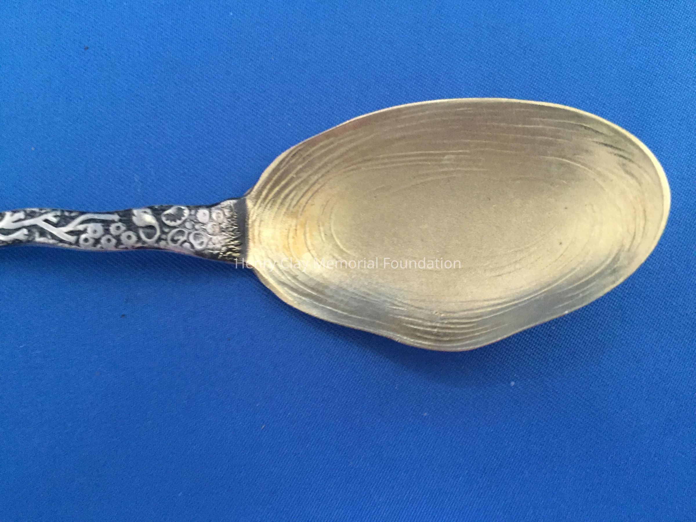 Set of 12 spoons with silver handles and gold-washed, oyster shaped bowls. Tha handles are designed in the shapes of oyster shells. Back of handle near bowl has hallmark of "RW&S" with a buck's head imprinted horizontally. Back of spoon is also marked "Sterling."