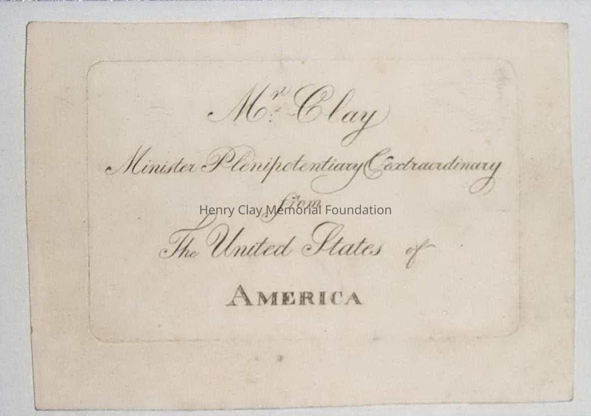 One calling card made of thick paper. Calling card reads: "Henry Clay Minister Plenipotentiary Exemplary."