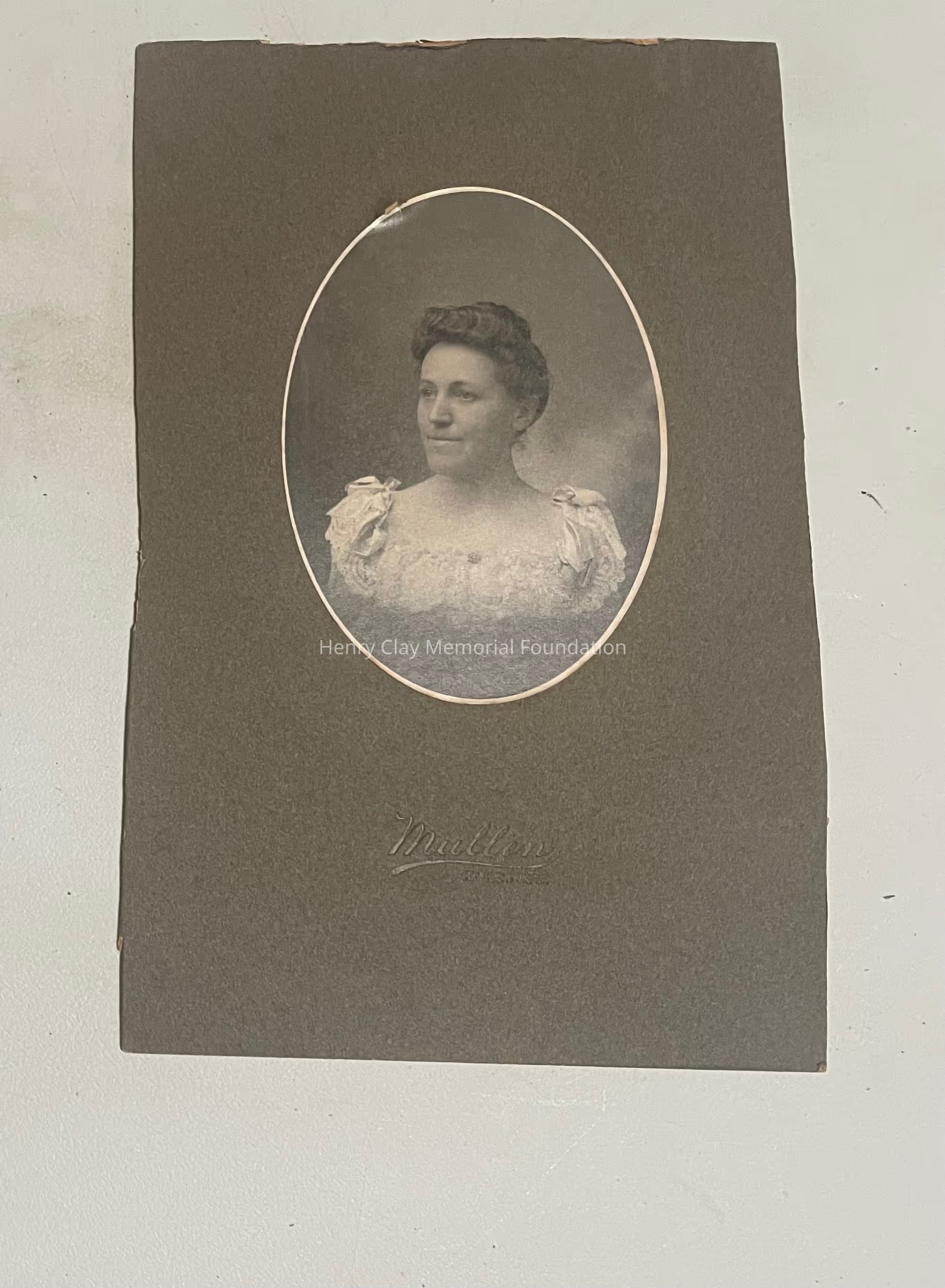 a photo print of an unknown young woman. Print is oval in shape. Print is from Mullen
