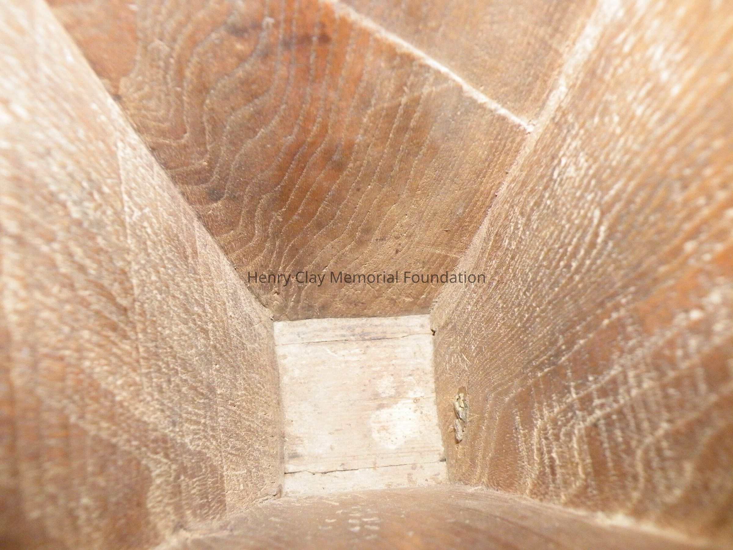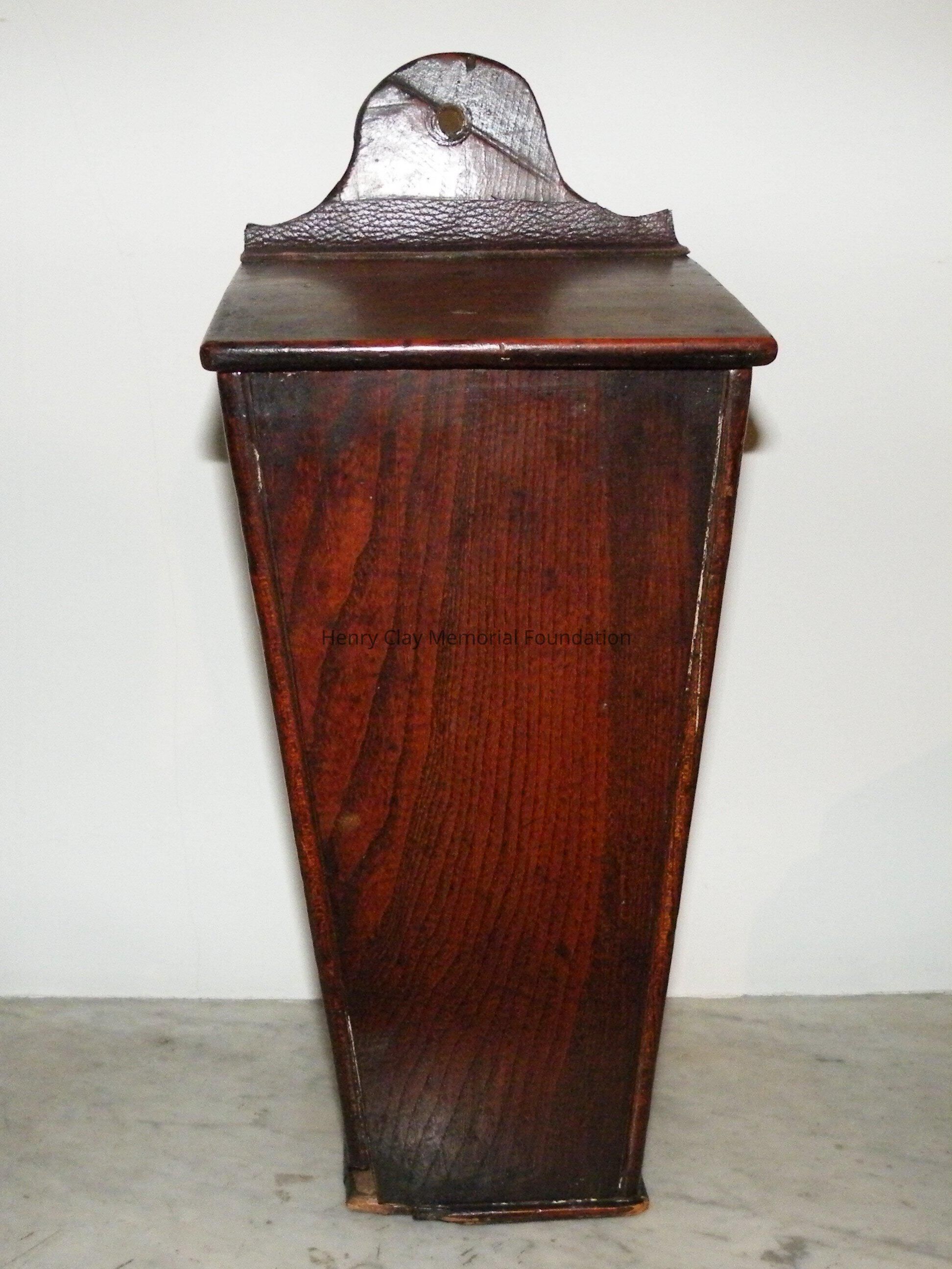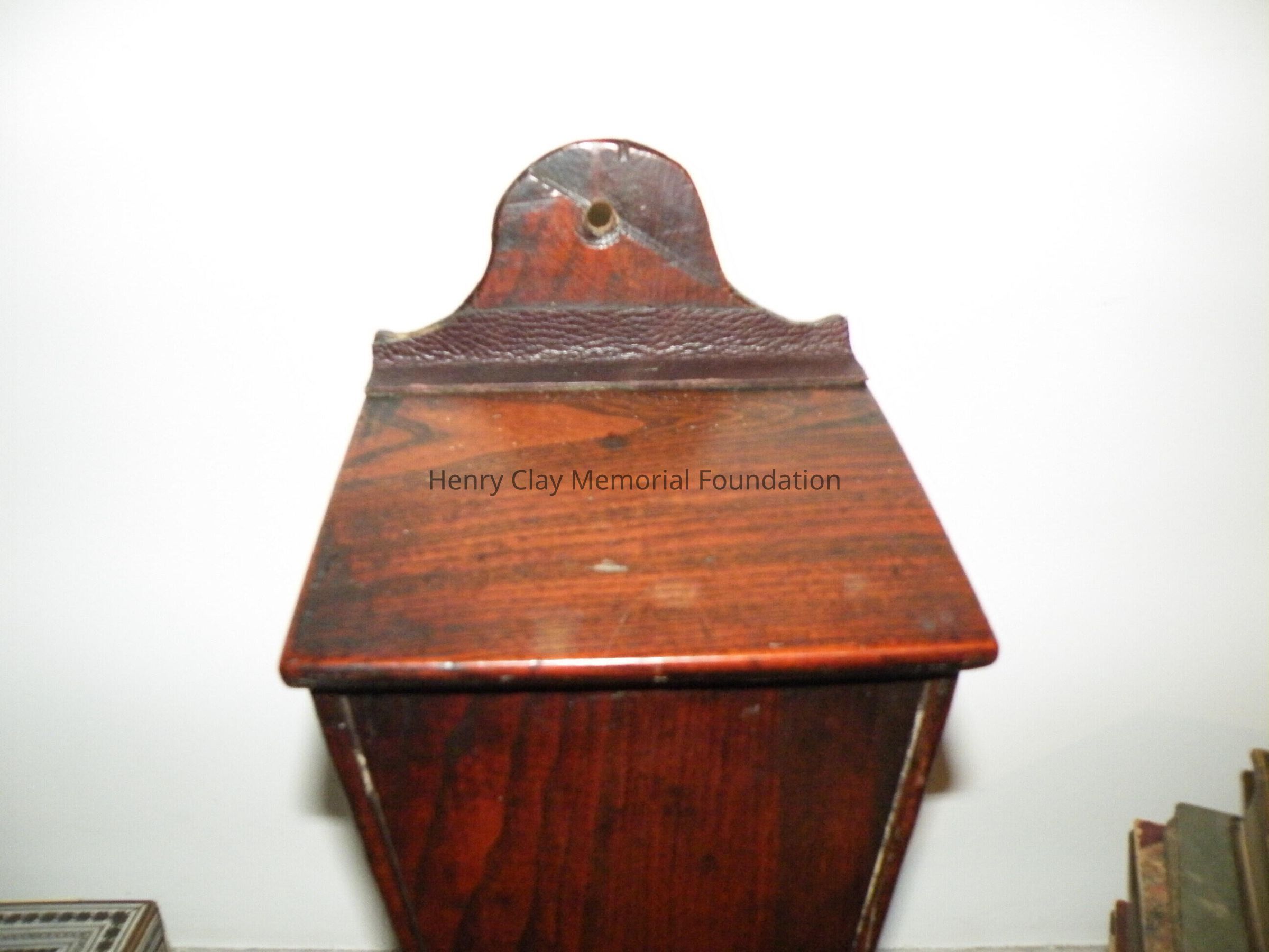 Match or spill box. The spill box is made of a dark wood and has a lid hinged with a leather strip.