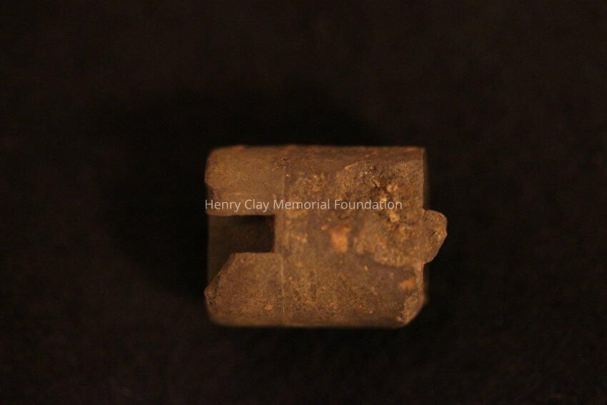 Metal Cylinder, approx. and inch in length. A fragement with minor damage, specifically a chip missing on one side.