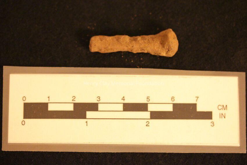 Square head nail fragment, possibly for a horseshoe. Rusted and worn on the top.