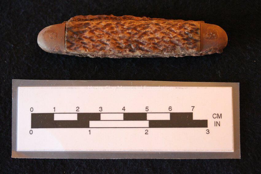 Wooden pocket knife with clasp. Rusted, wood in poor condition