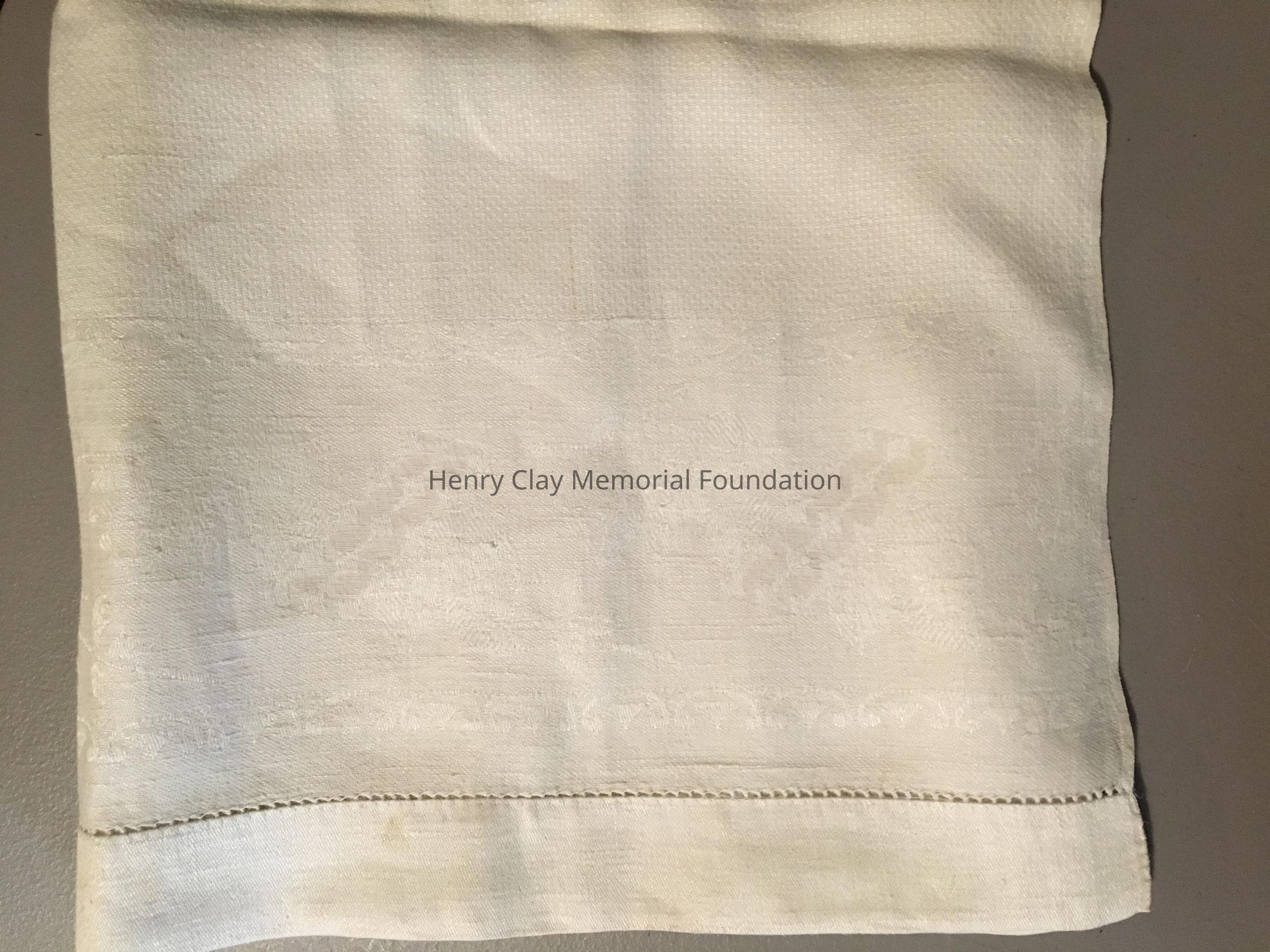 A white table runner with flower pattern.
