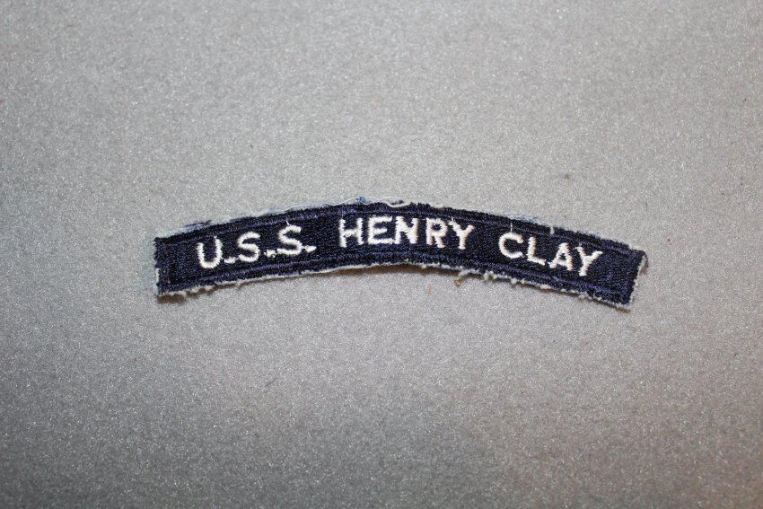 One blue fabric patch with name "U.S.S. Henry Clay" in white letters.