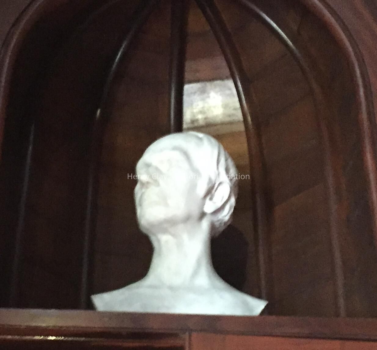 White, hollow, cast of Henry Clay shown looking slightly to his right. Stamped in large block letters on rear base, "J.T. Hart, Sculptor." Although there is a piece of surface plaster missing after that, the last number in a date is still visible, a 7. On the left "arm" of the bust is a very faint inscription, "H. Clay" which looks like Clay's signature. On the inside of the bust, written in pencil, "To go to Clay Simpson -- 1st cast of Henry Clay".Dimensions