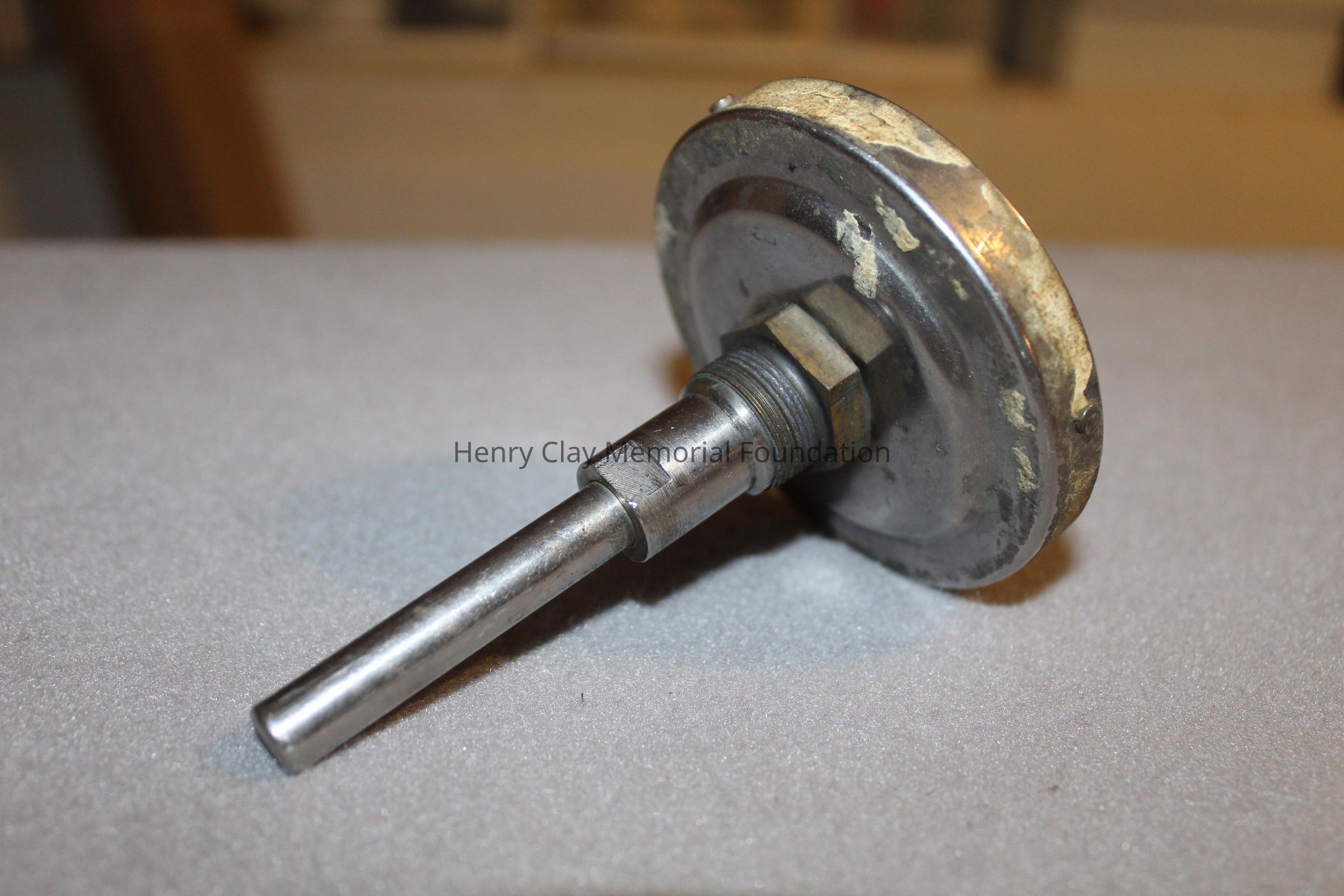 One round metal temperature gauge marked from 0 degrees to 180 degrees Fahrenheit, Has blakc indicator Gauge has metal tube stem extending from back of dial. Above the screw where the indicator mounts is the word Weston. At the bottom the dial is labeled: Weston Instrs. Div. of Daystom Inc. Newark, N.J. USA Model 4320 176390B.