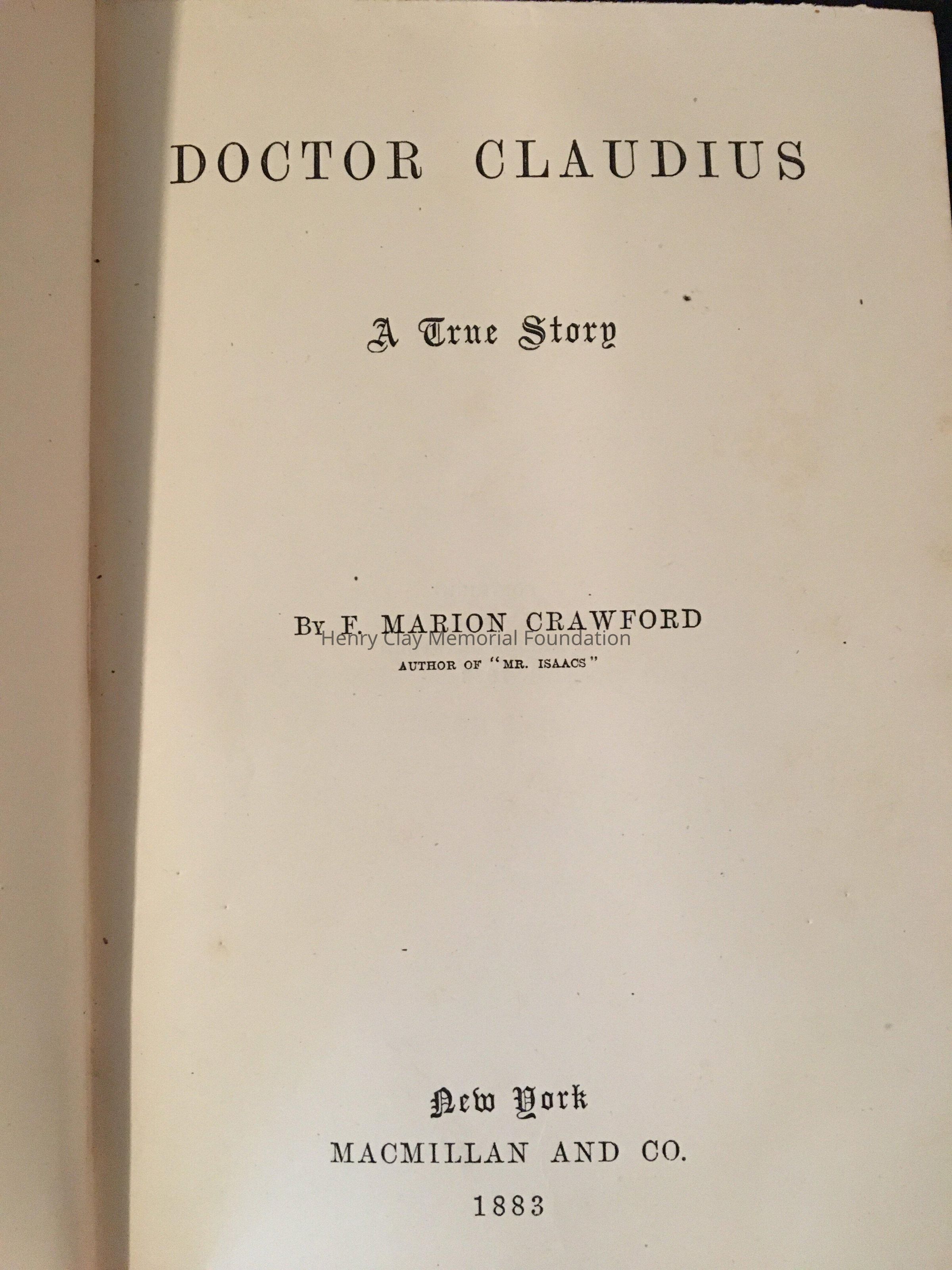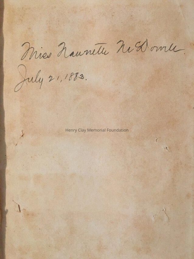 Novel. Inside book " Miss Nanette McDowell, July 21, 1883" Light brown with dark brown stripes and lettering.