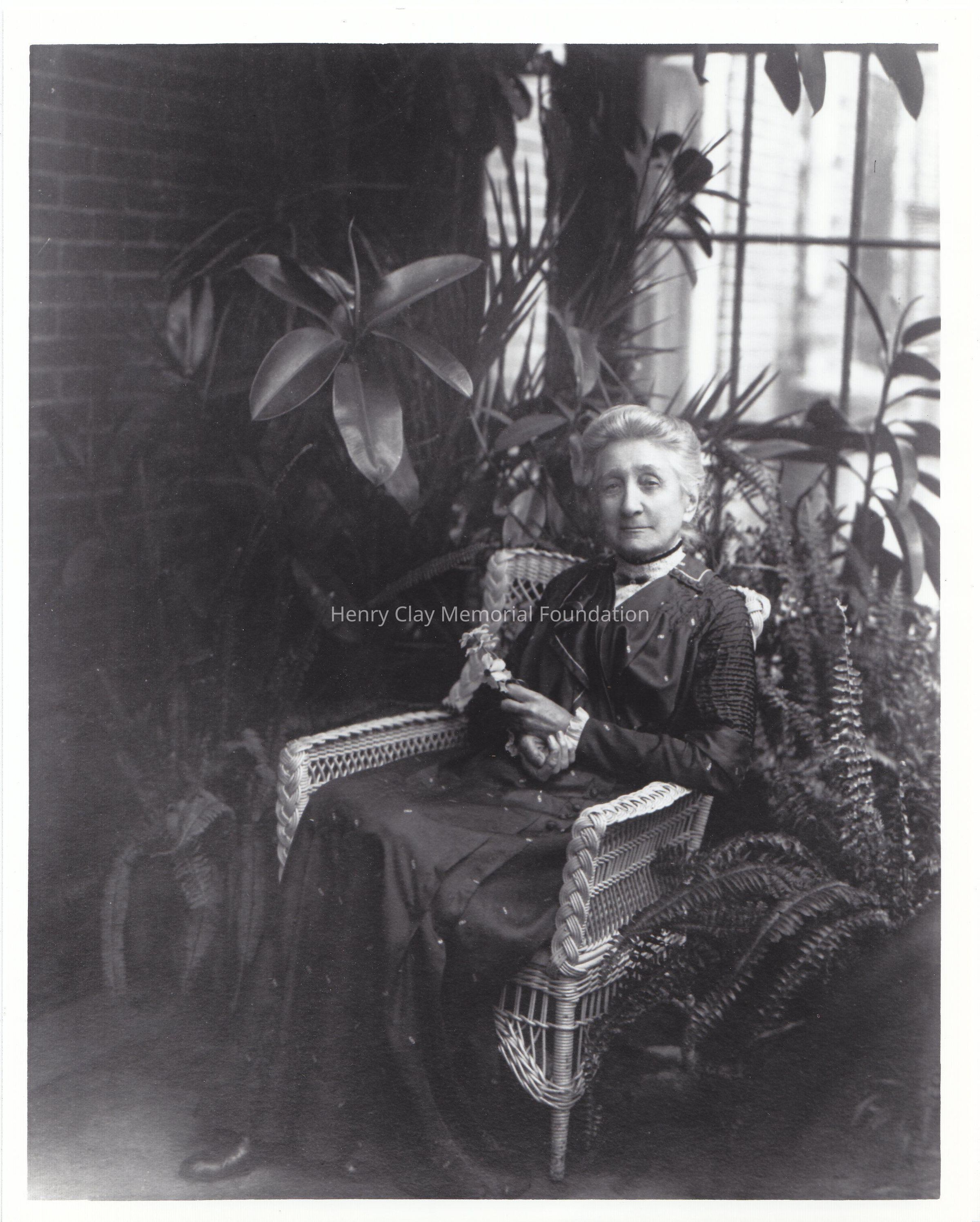 A black and white copy of a photograph of a woman sitting on a wicker patio chair in Ashland sun room.