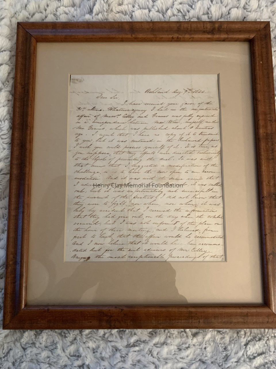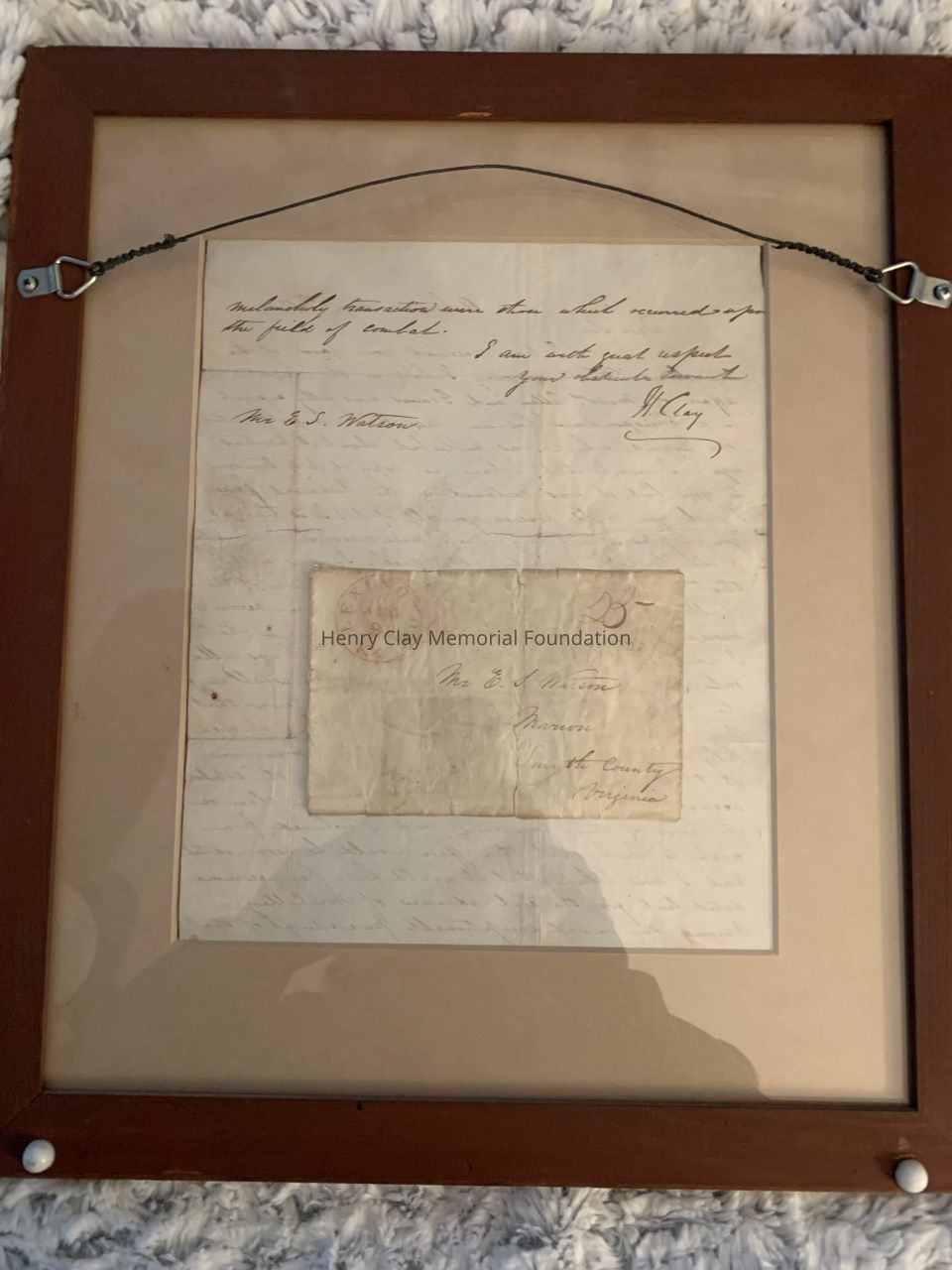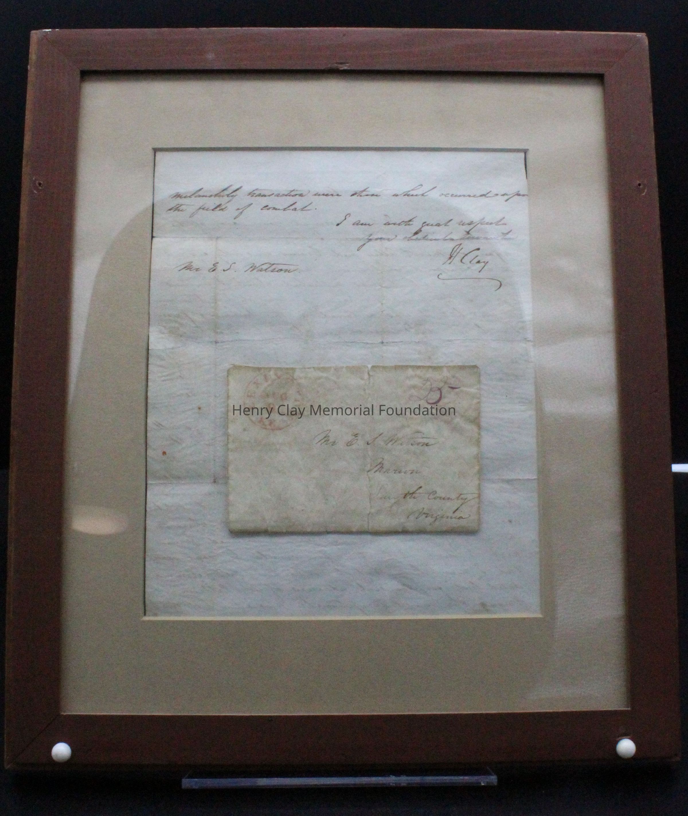 1 letter from Henry Clay to ES Watson 8/9/144 re: Cilley - Graves duel. 1 piece of paper and envelope.
