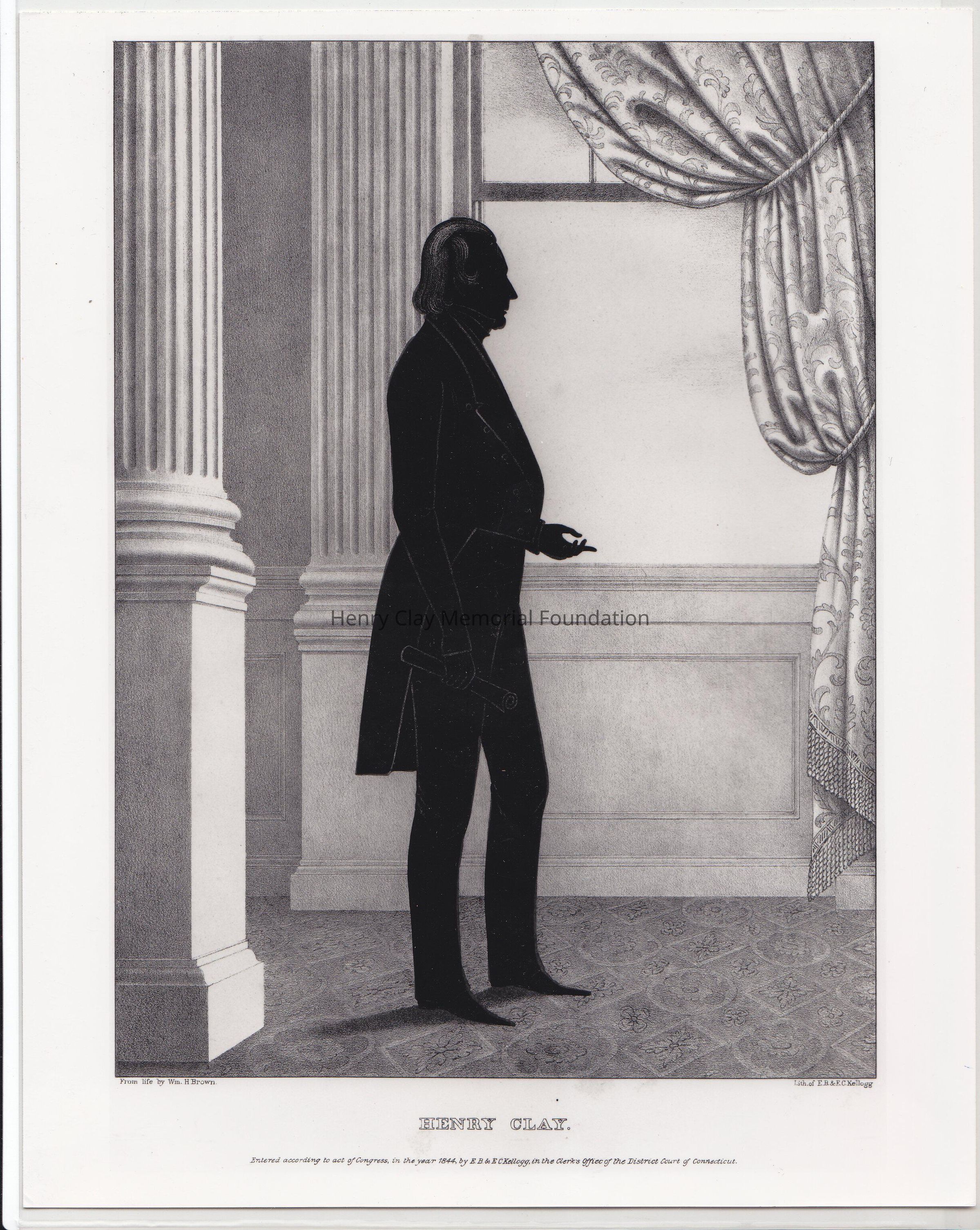 The copy of a lithograph silhouette of Henry Clay by E.B and E.C Kellogg lithography company published in William H.Brown's Portrait Gallery Distinguished American Citizens, Hartford 1845