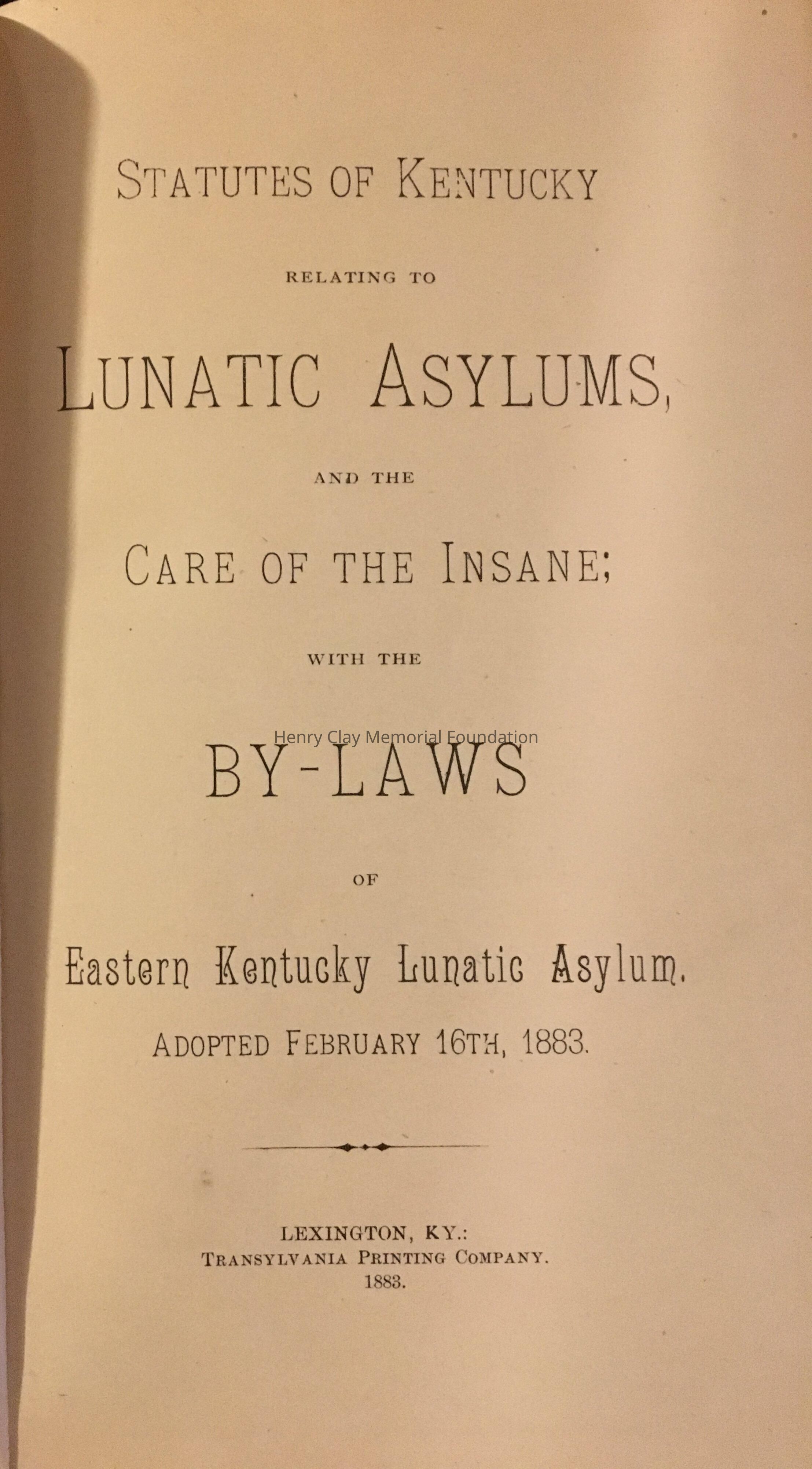 The small booklets shows the various by-laws related to the Lunatic Asylum of Eastern Kentucky.