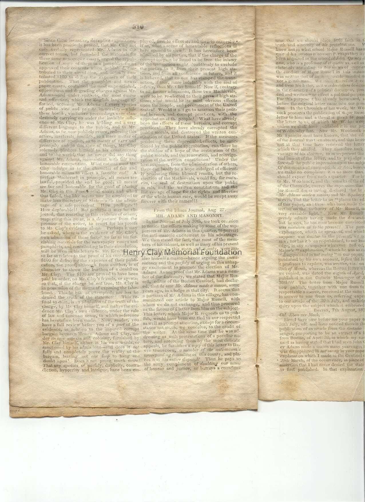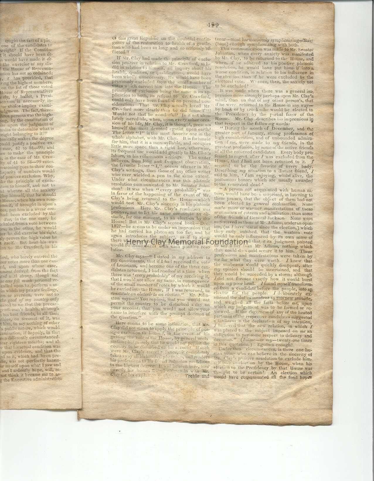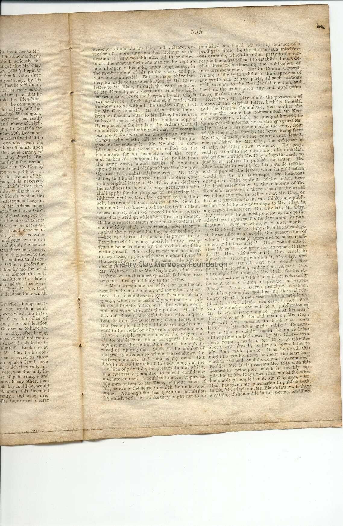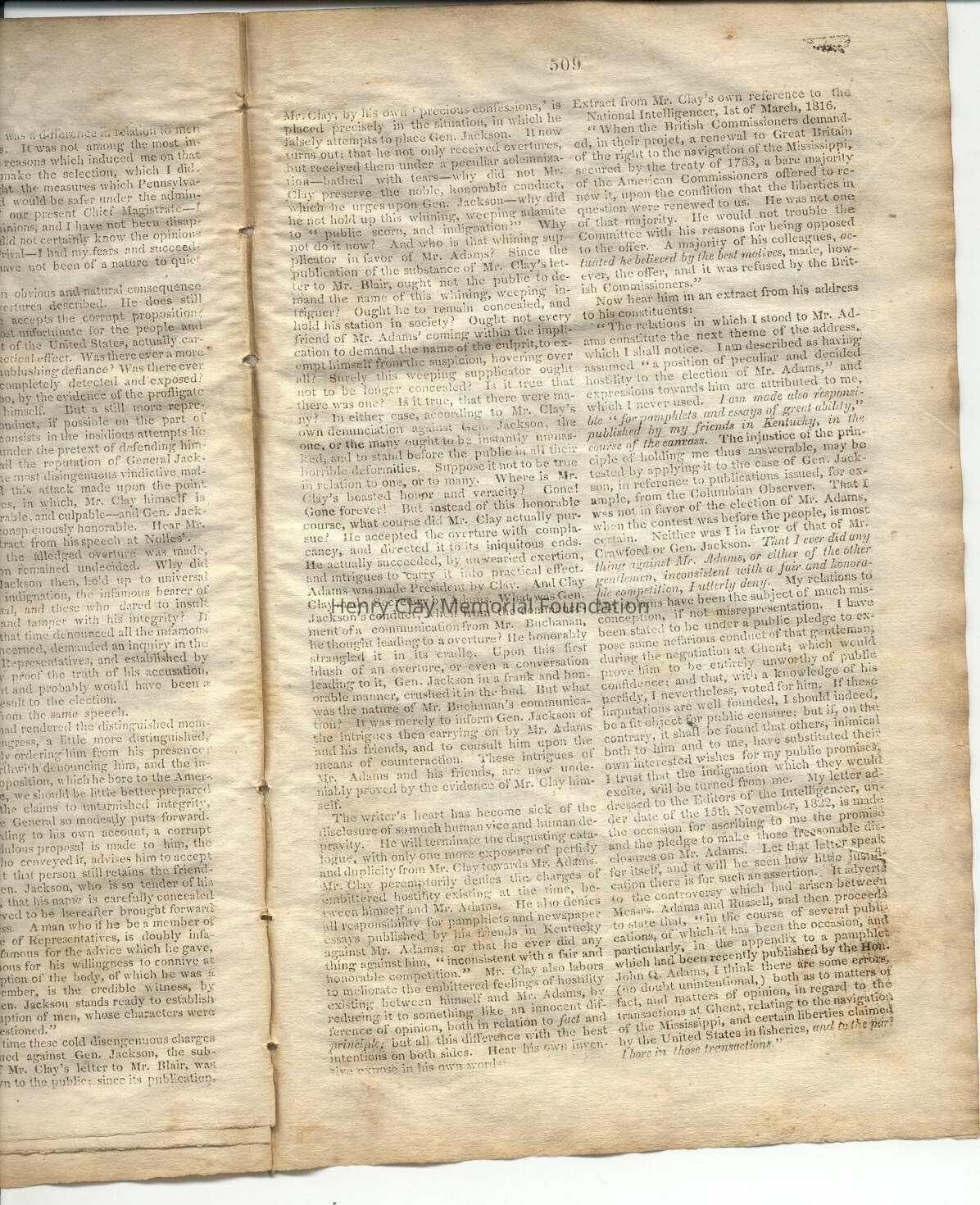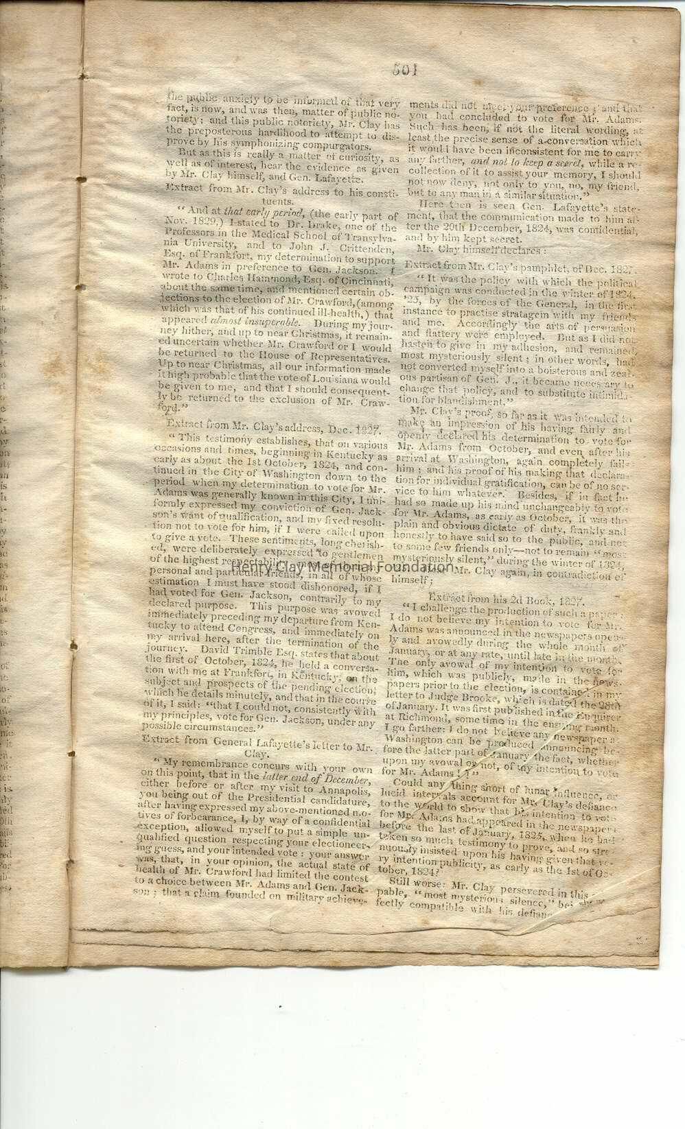 An article written to refute Henry Clay's claims of the nonexistence of a "Corrupt Bargain" between Clay and John Quincy Adams to throw the 1824 presidnetial election to Adams in exchange for the office of Secretary of State.