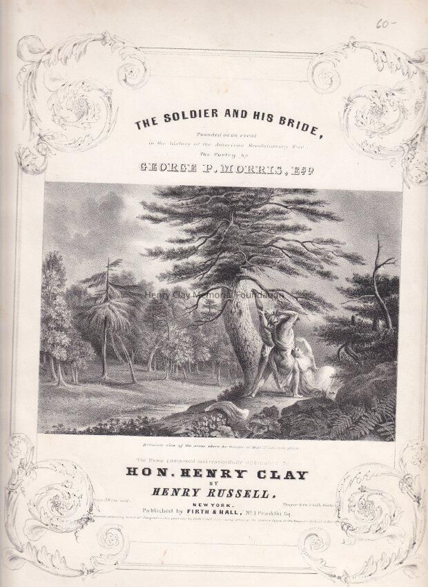 A piece of sheet music dedicated to Henry Clay in 1844. Score by Henry Russell, Poetry by George P. Morris.