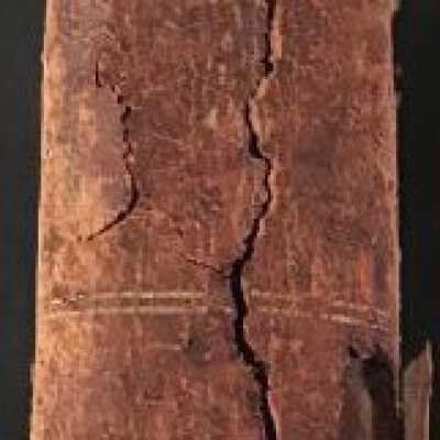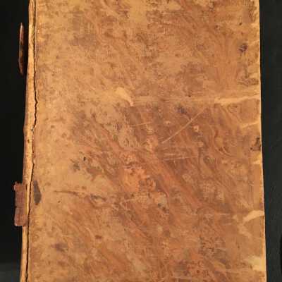 Hardcover, marbled, brown, spine is breaking.