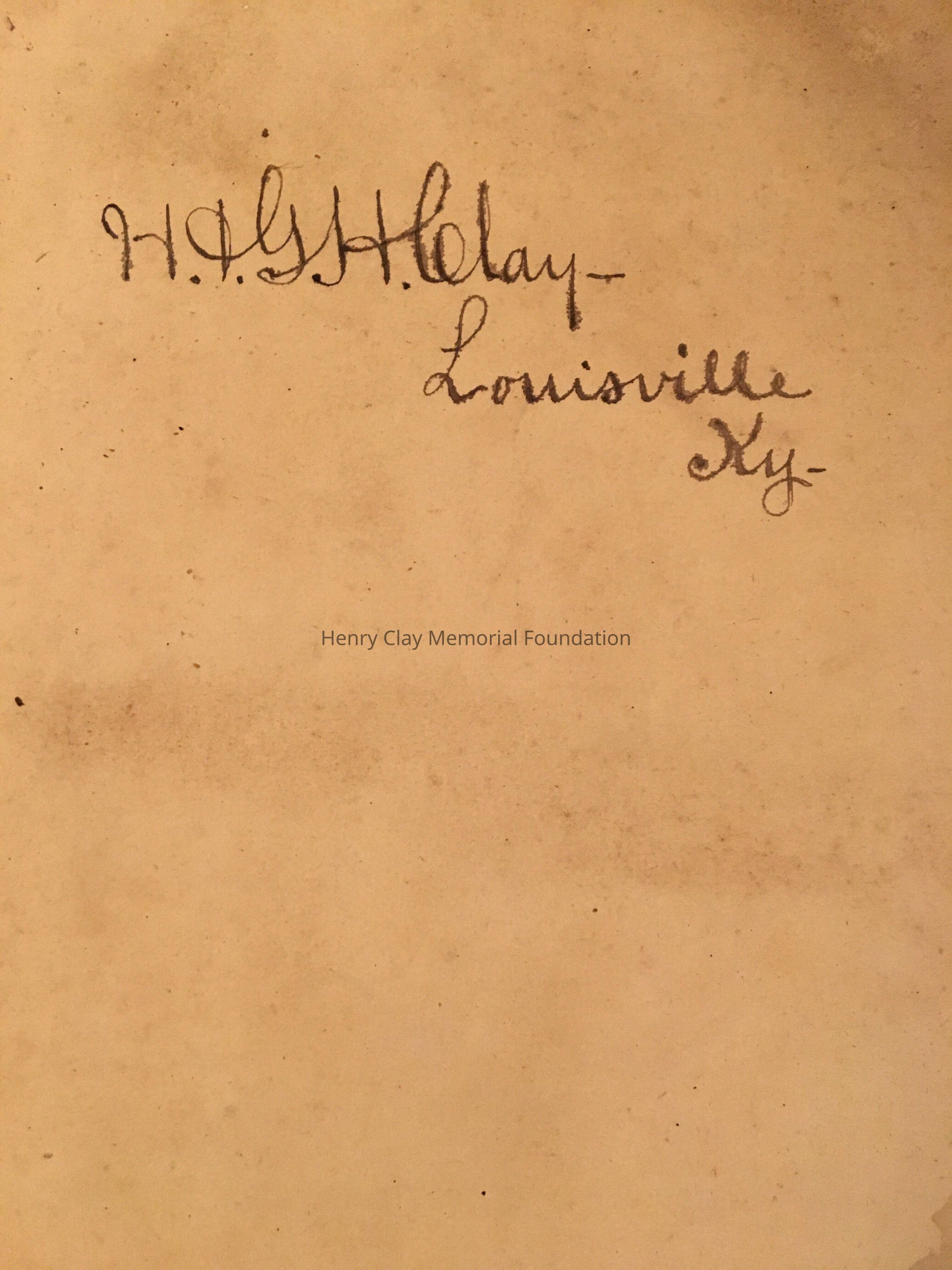 Inside on the first page in ink "H.I.G.H.Clay Louisville Ky"