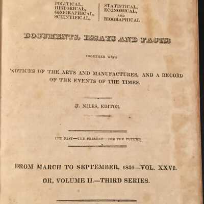 Collection of newspapers Hardcover, leather, spine is red with gold writings.