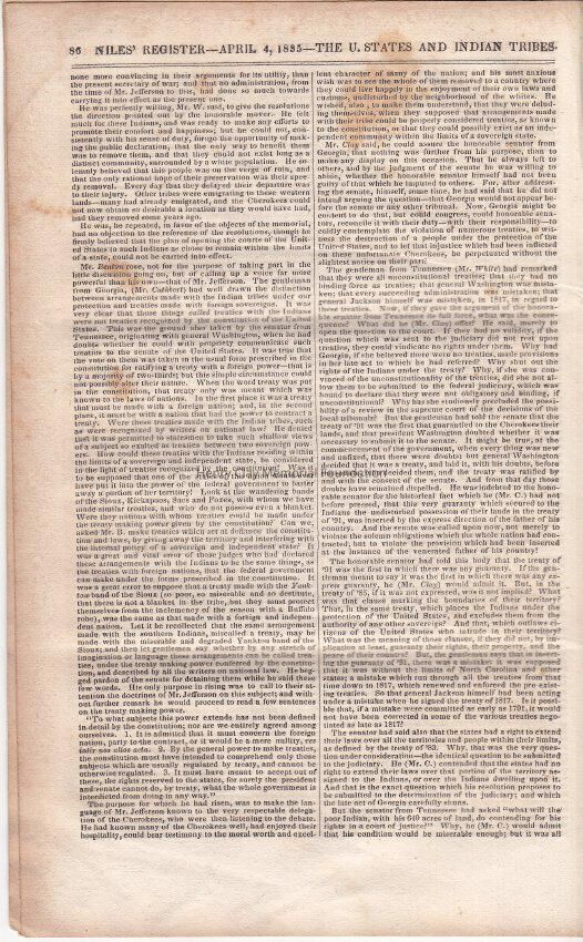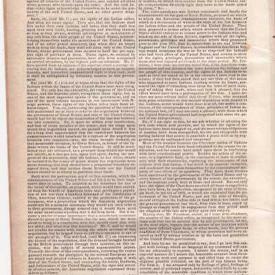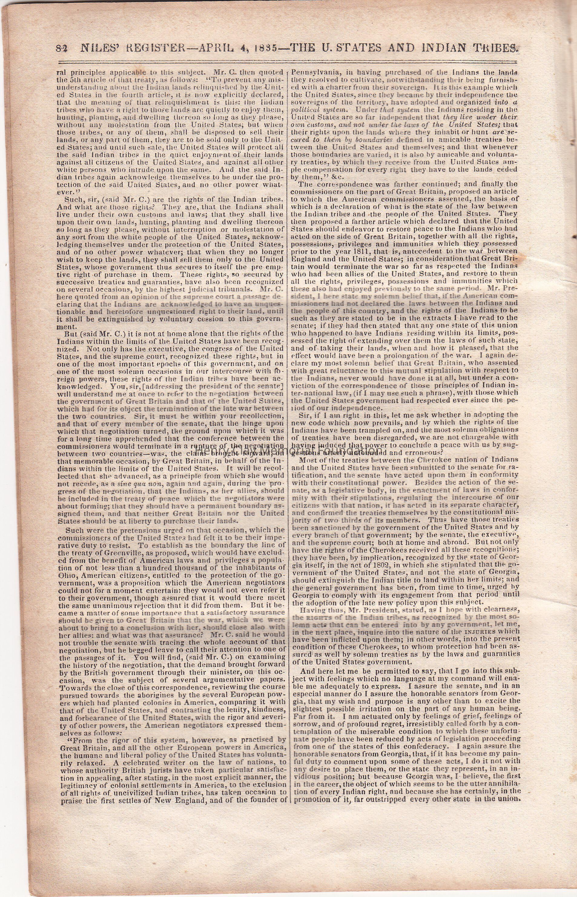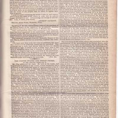 A copy of a magazine with many articles on Indian affairs in the US in 1835, including text of Henry Clay's speech on the Cherokee.