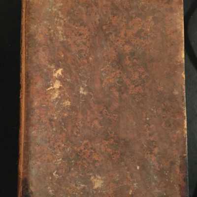 Collection of newspapers. Inside book there is a newspaper clipping. Leather bounded, spine is black, gold letters.