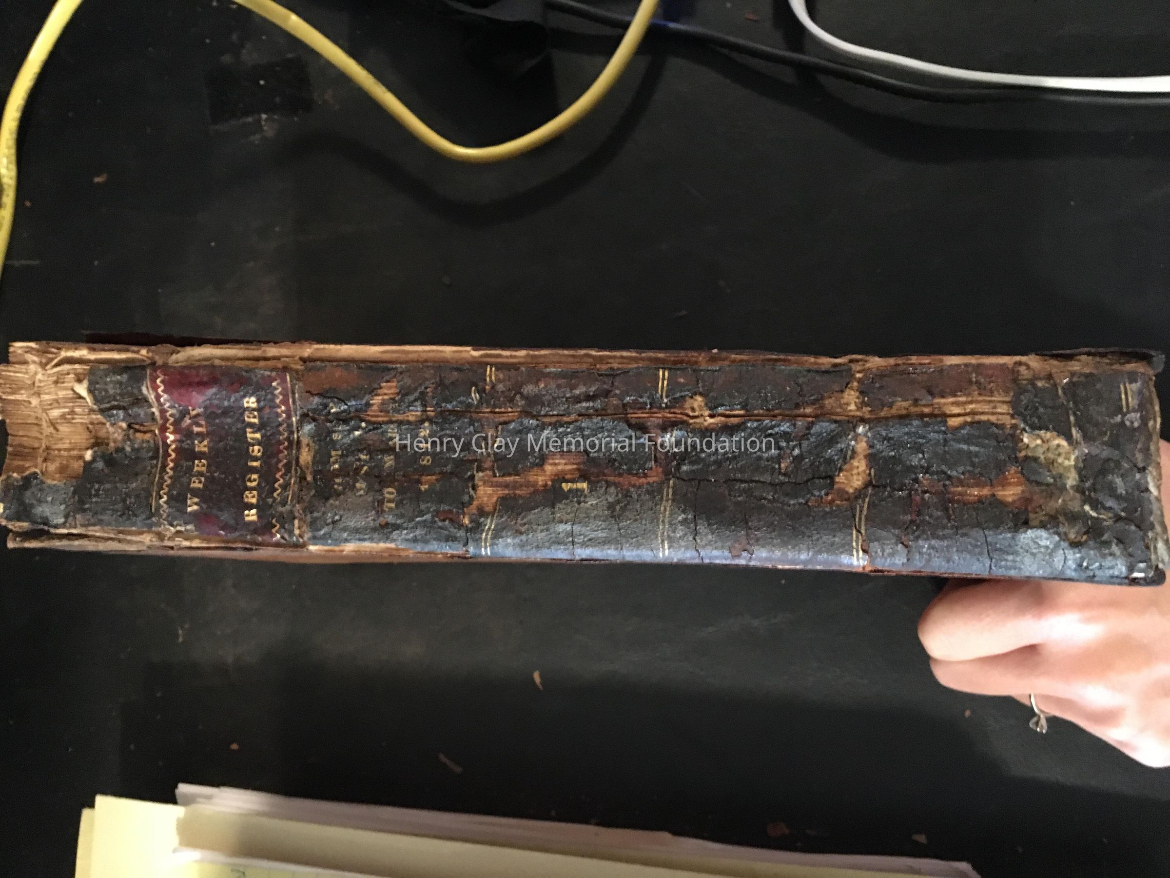 Collection of newspapers. Pg. 332 Clay is mentioned in a letter Leather bounded. Spine is black, cracked several missing pieces. Fire damage.