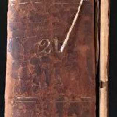 Collection of newspapers. Clay is not mentioned in the index. Leather bounded, front cover is detached, and the bottom part of the spine is missing.