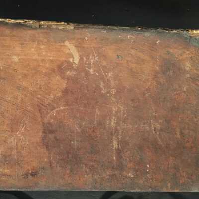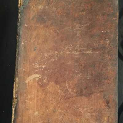 Leather bound cover. Spine is cracking, and has several missing spots.
