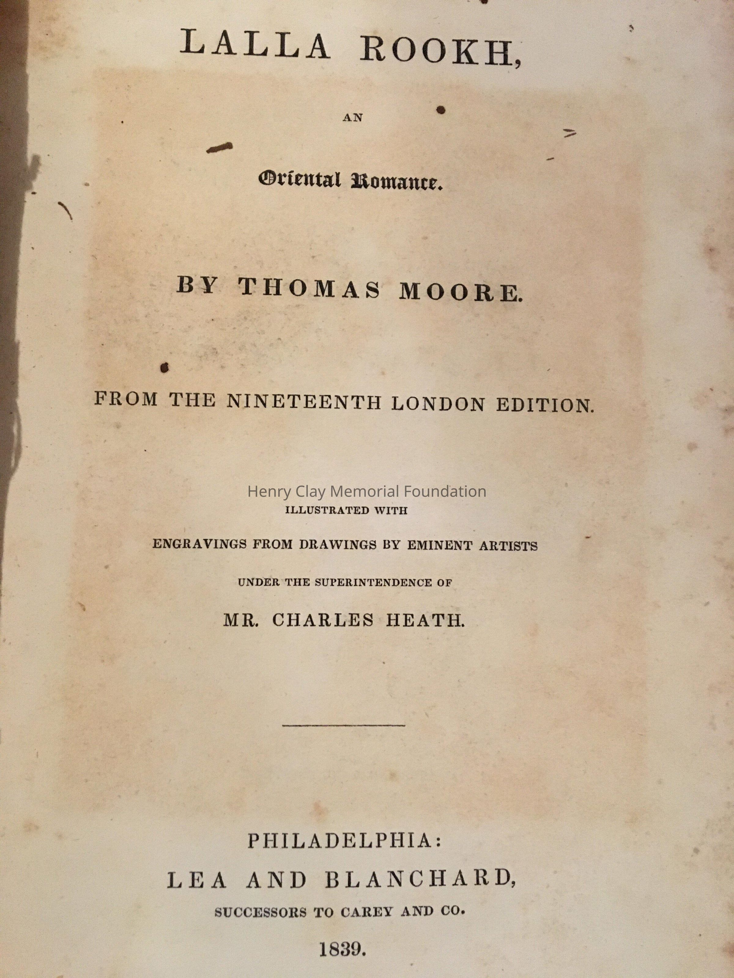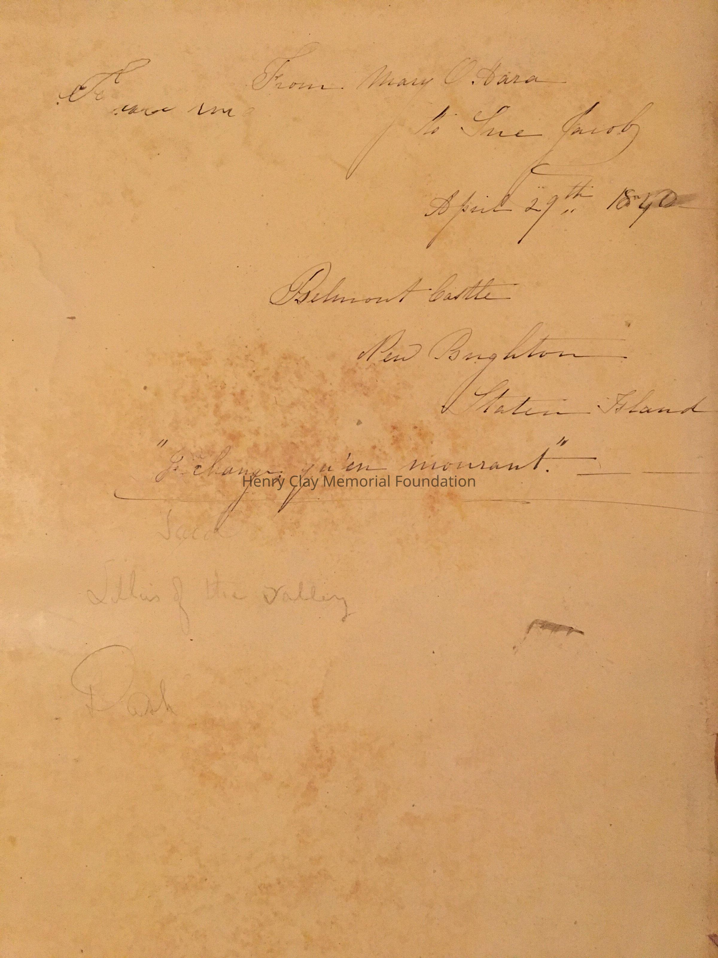 An oriental novel. Inside the front cover on several pages, there are handwritten inscription. " From Mary O'Hara to Sue Jacobs, April 29th 1840 Perdmont Castle (?) New Brighton Staton Island (a quote).