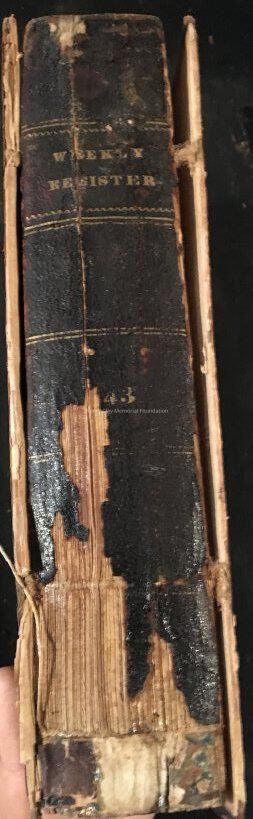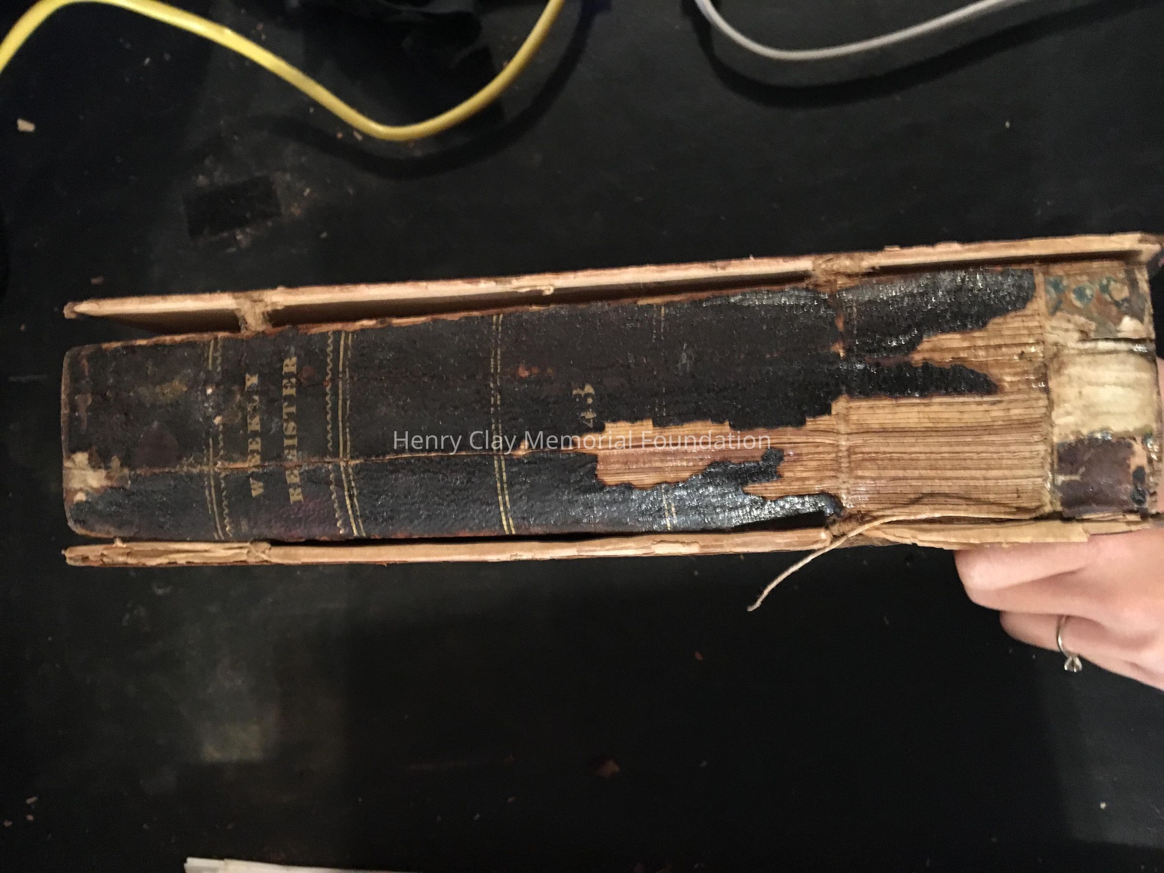 Leather cover, Spine is black, cracked and partially missing