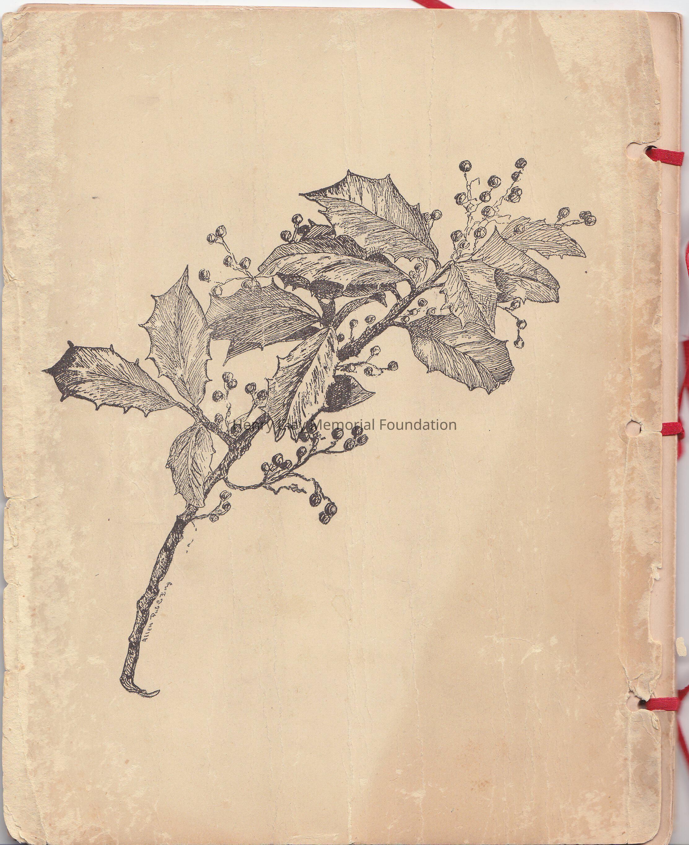 A booklet titled "Christmas in Kentucky 1862" By Elizabeth Bryant Johnsston. In the front a drawing of a fireplace. Inside on the first page " Washington D.C: Gibson Bros.,Printers and Bookbinders, 1892". Inside there are five illustrations. On the last page there is a drawing of a branch of holly.