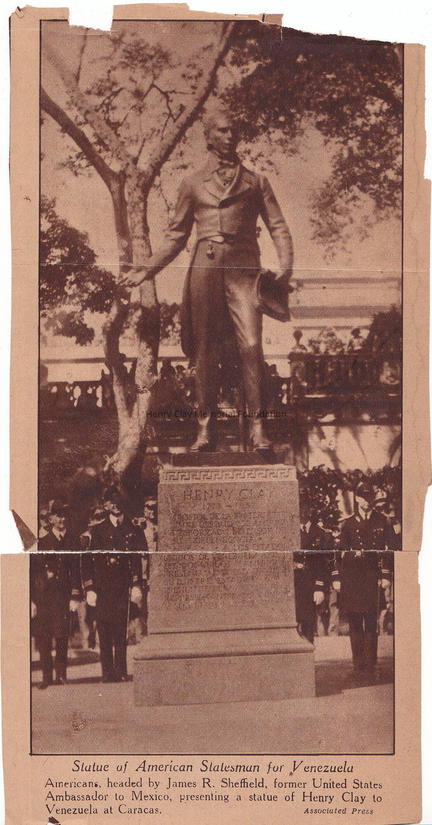 Clipping of newspaper showing the statue of Henry Clay in Venezuela.