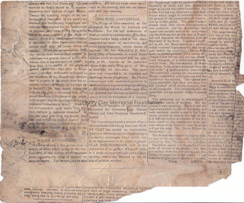 One page of what looks like a newspaper with something related to Clay Campaign ca. 1843