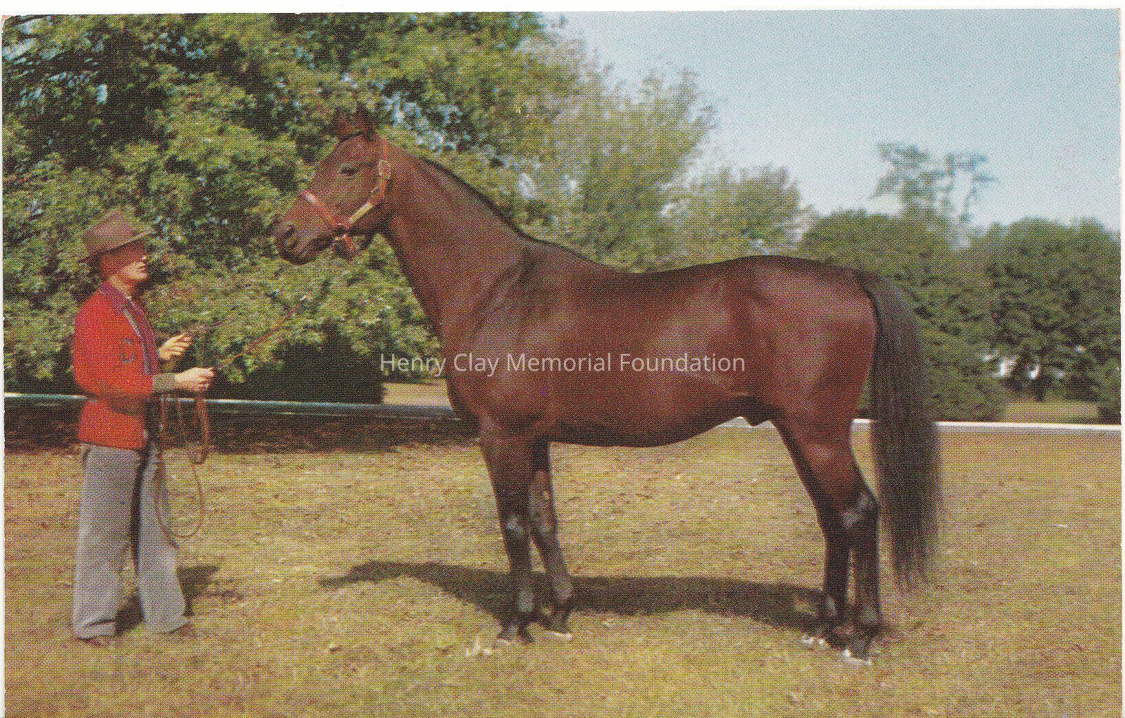 Two colored Postcards depicting a horse and a man in a field. In the rear " First horse to earn over one million dollars, was two year old colt of year 1947. Horse of the Year 1948"