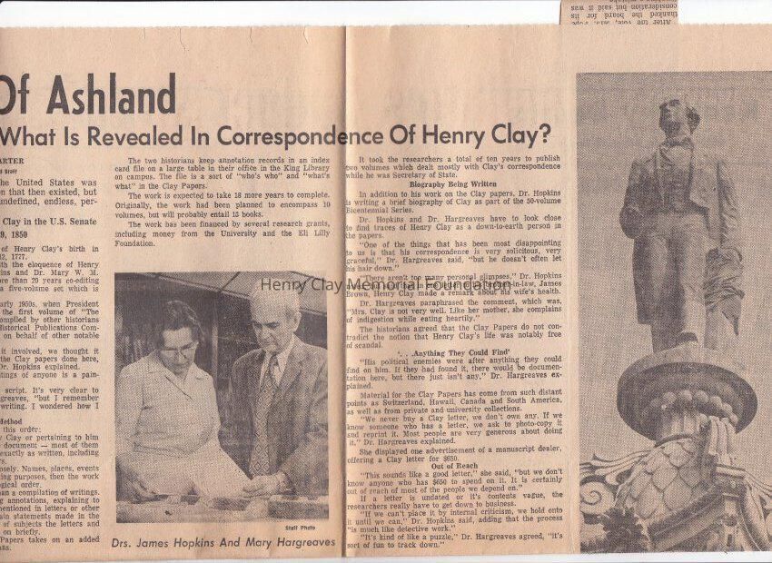 An article talking about Clay's correspondance, and a smaller clip about the Henry Clay Monument in Lexington cemetery.