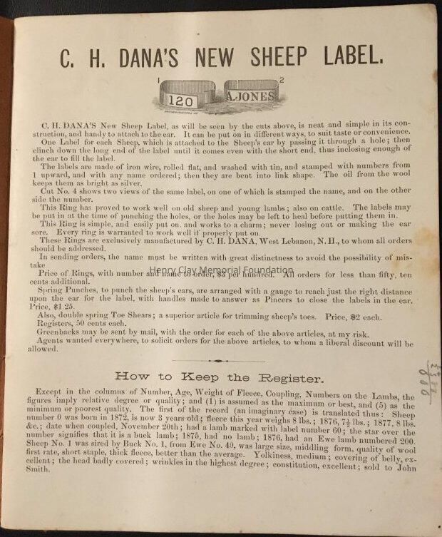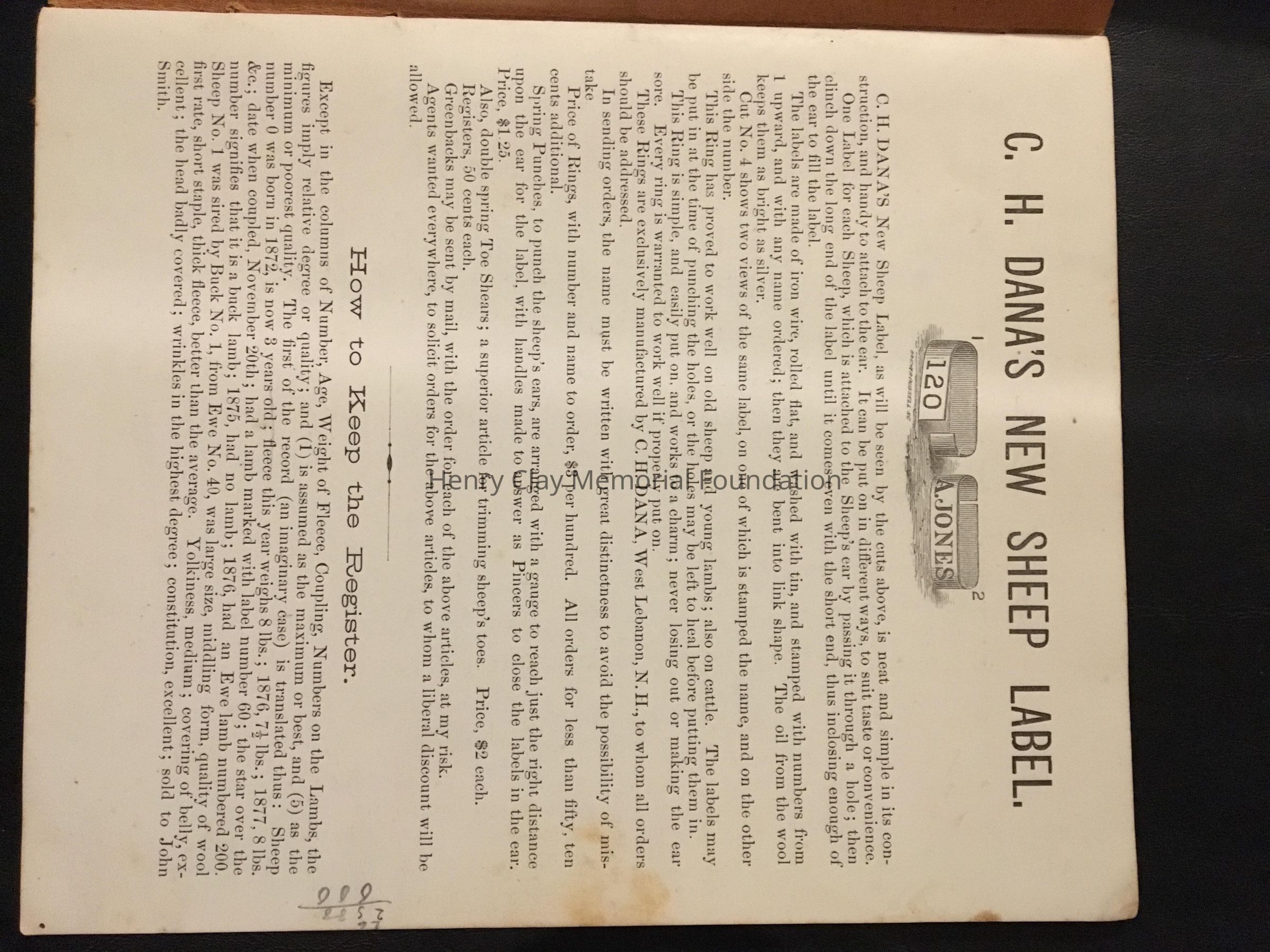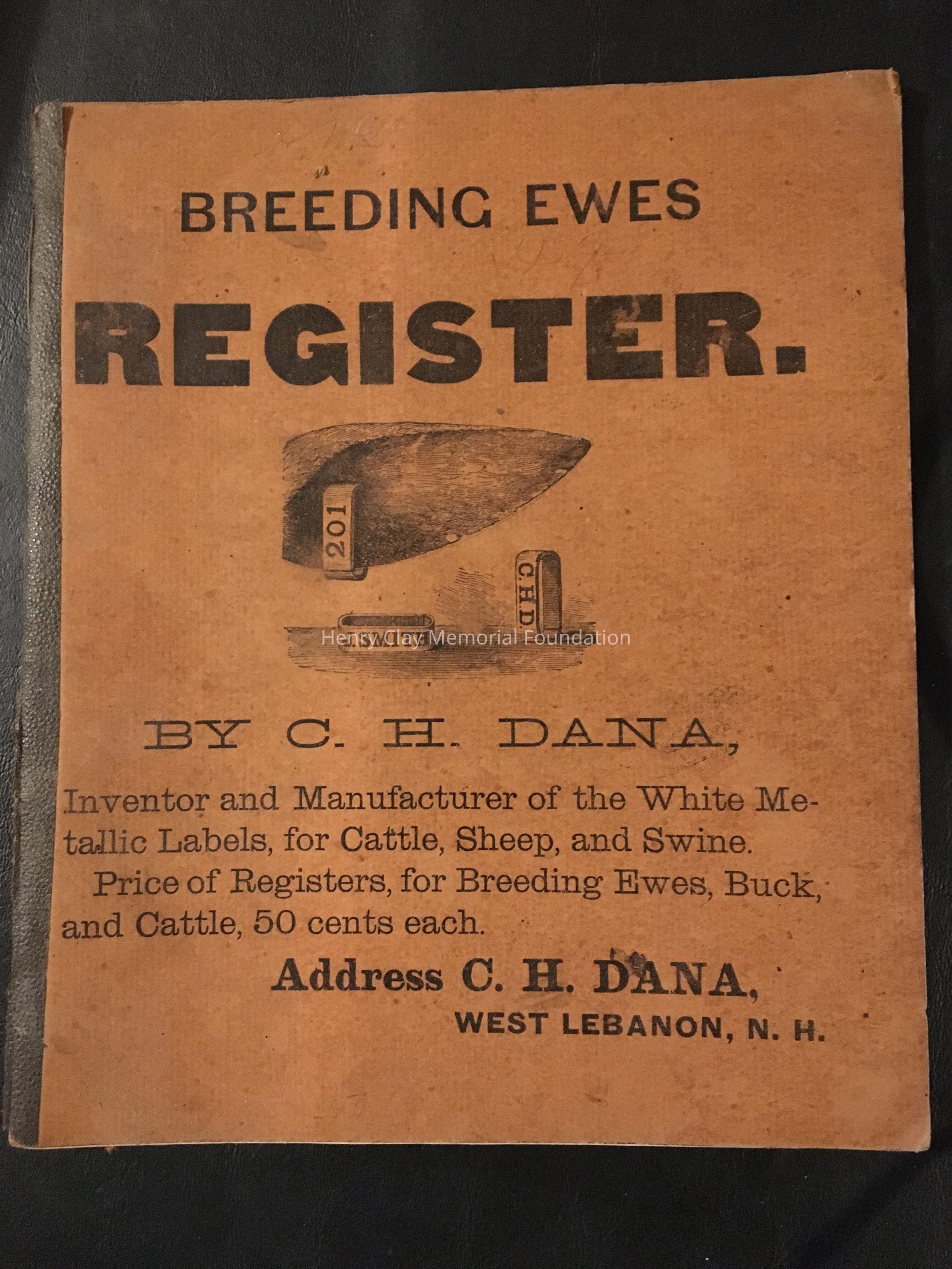 A small notebook "Breeding ewes register" by C.H Dana Inside handwritten notes about breeding of bucks.