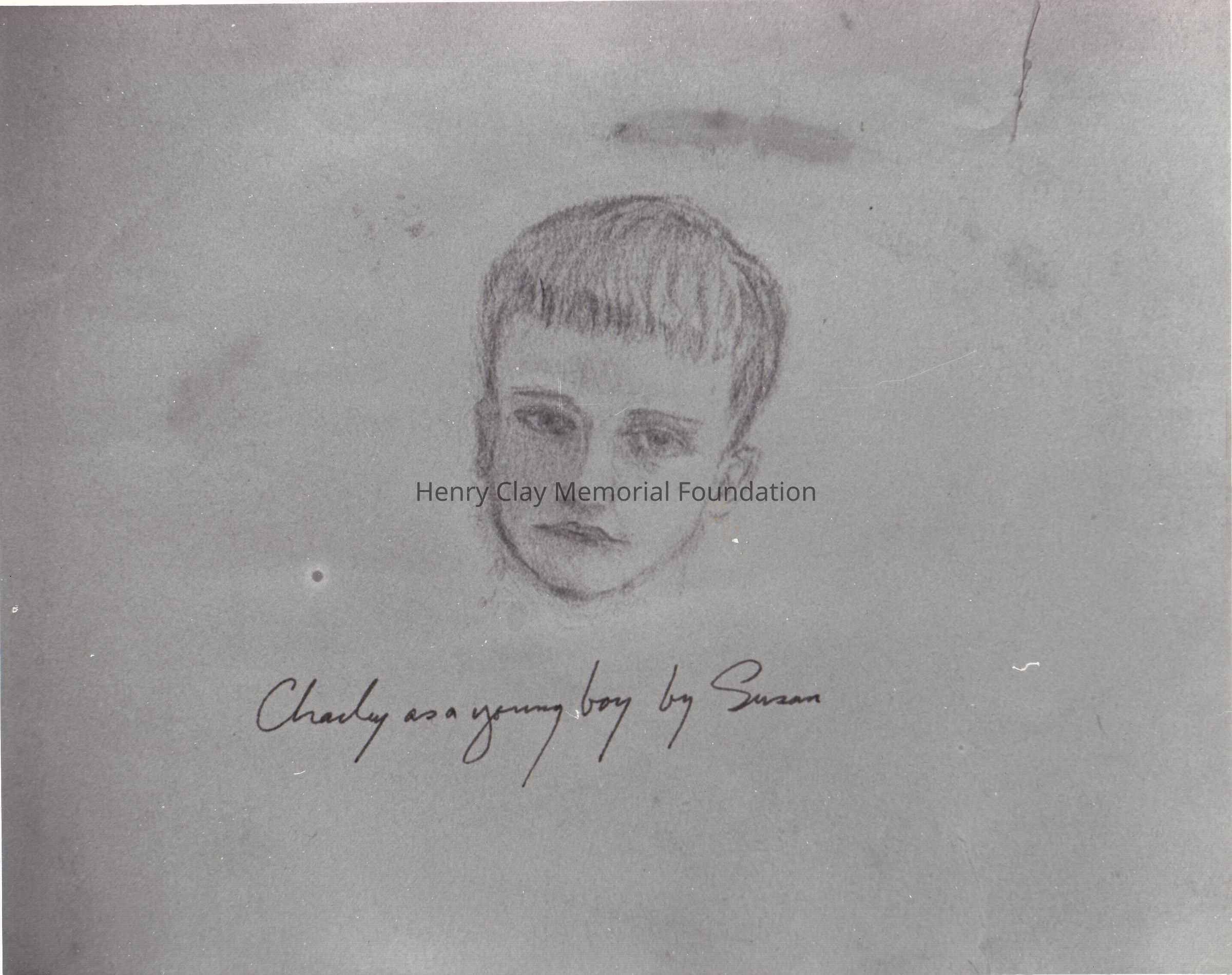 Photograph of a drawing made by Susan Clay Sawitzky. The drawing show the face of a boy. Underneath she wrote " Charley as a young boy by Susan"Dimensions