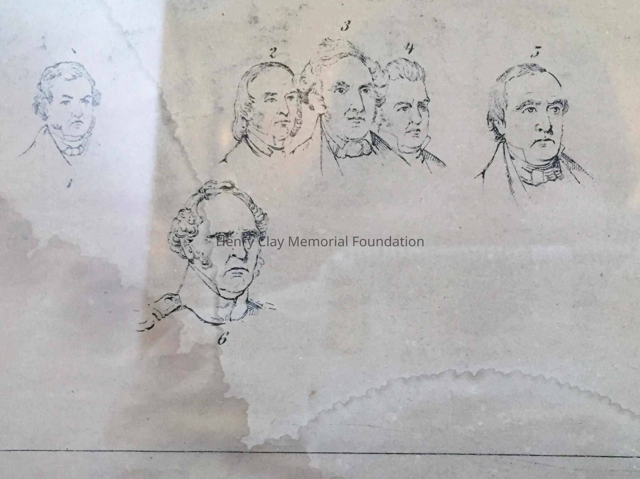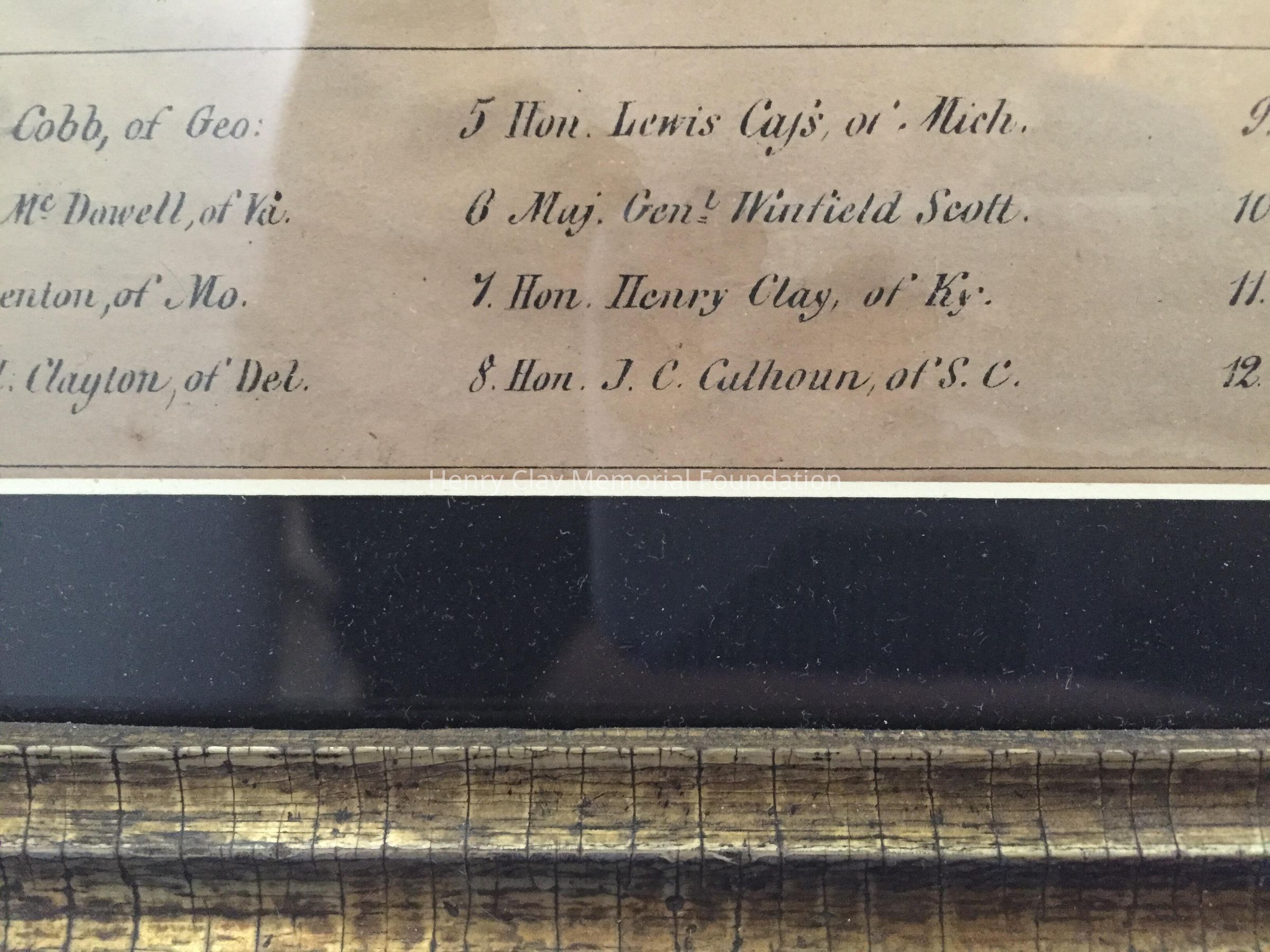 Lithograph depicting 23 numbered bust sketches, identifying each from the larger Union engraving. framed in simple gilded frame with black mat. The caption reads "The Key to the Union"Dimensions