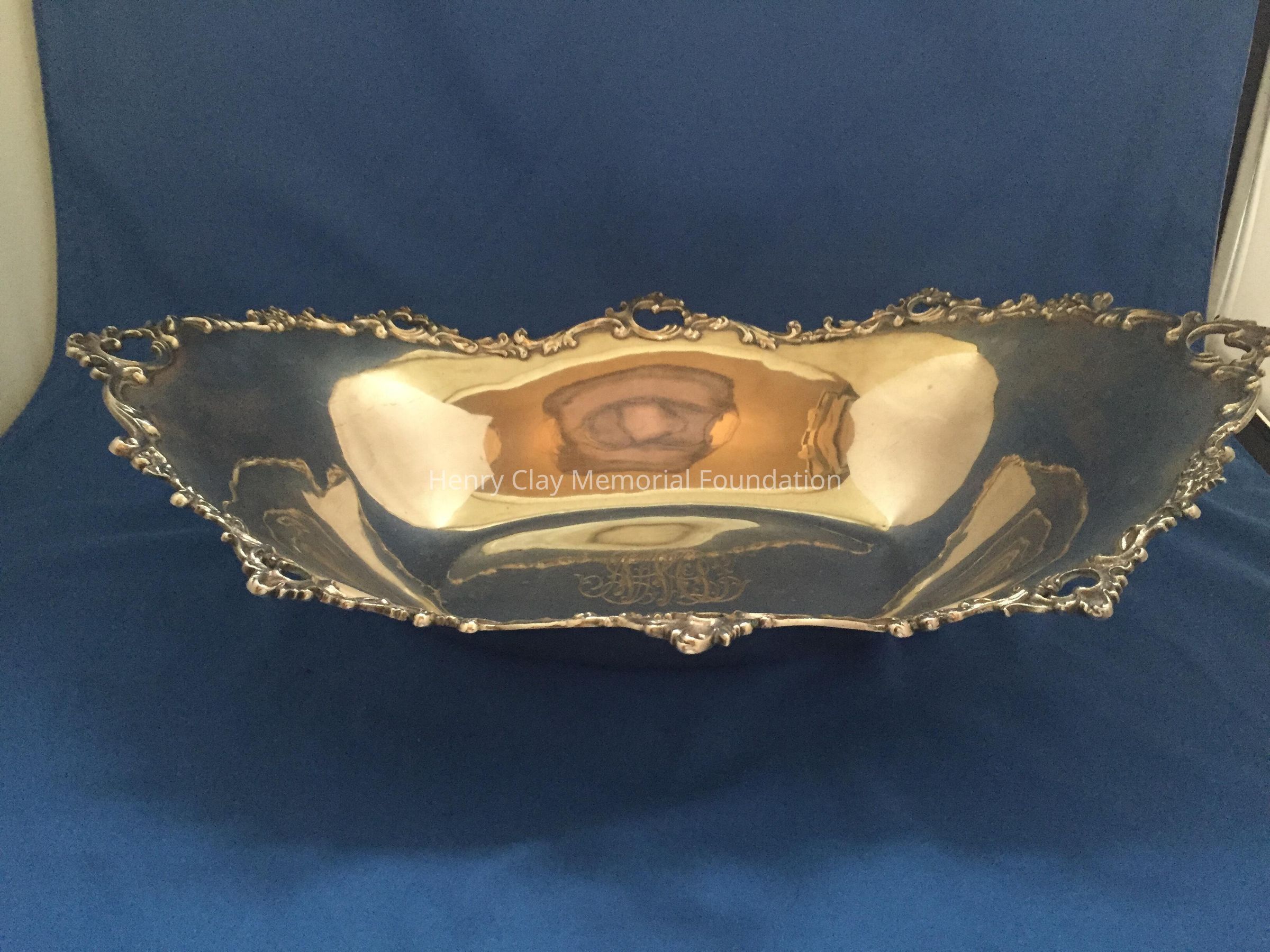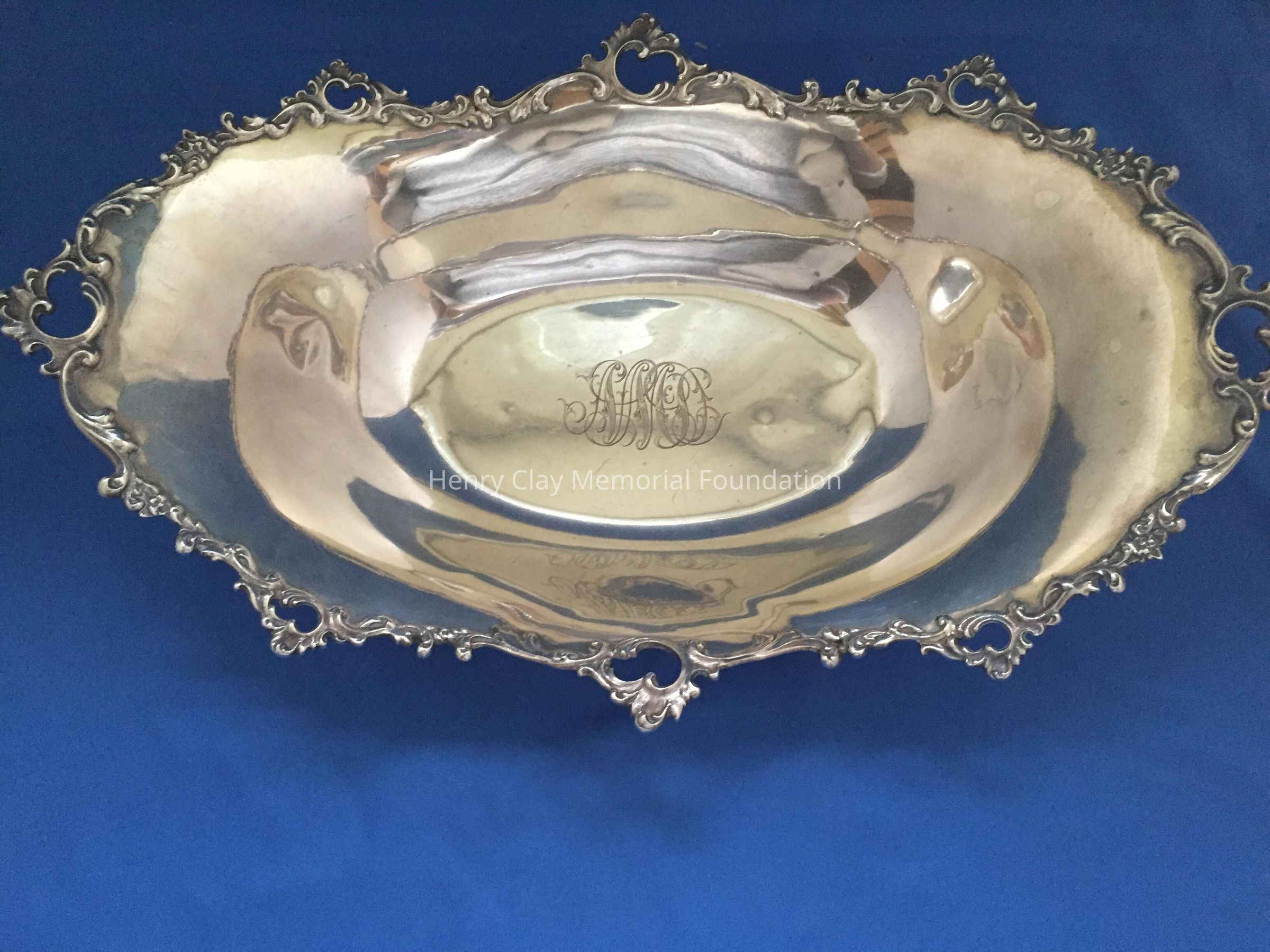 Oblong bread bowl with pierced filigree around edge. Engraved "NMcD" on inside bottom. Marked "Theodore B. Starr/Sterling/New York/447" on bottom.Dimensions