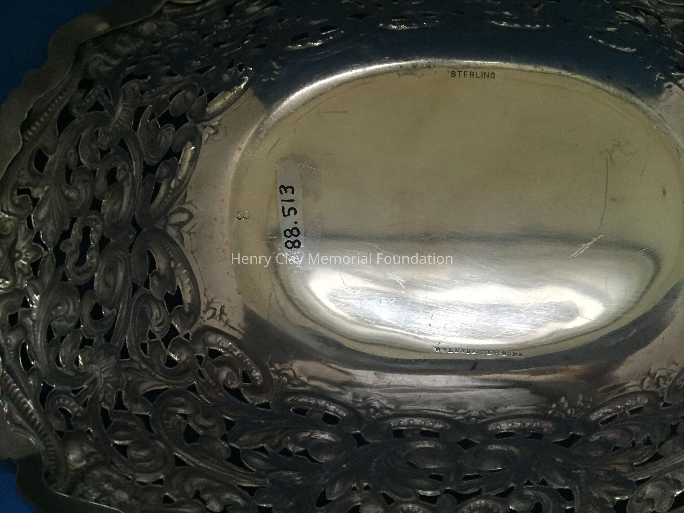 Sterling 30 Wm. Kendrick's Sons. Oval pierced design. Floral design on edge.