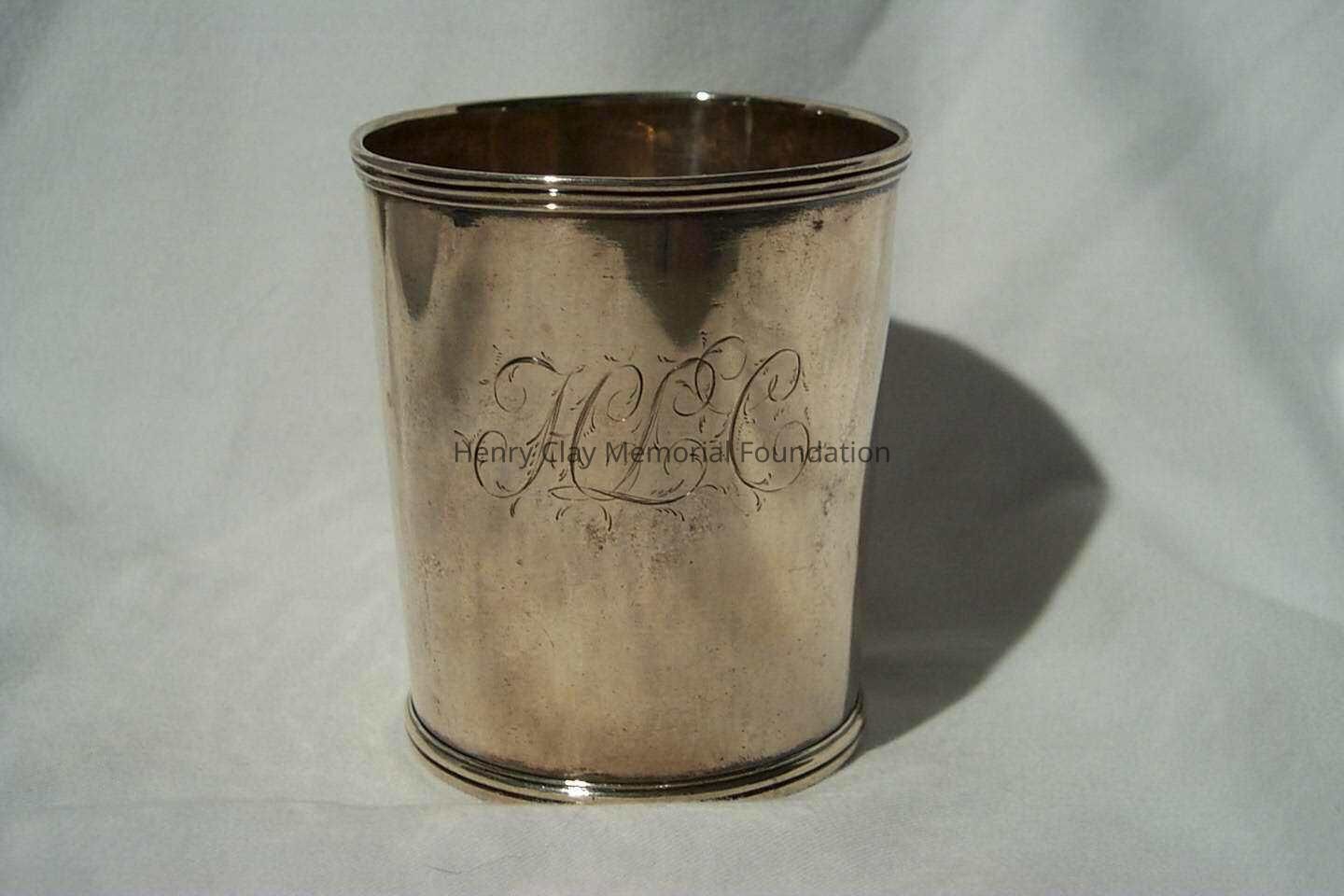 Silver, engraved "HLC" on side for Henry and Lucretia Clay. Stamped on bottom with "C.A. Burnett" and "C.A.B." perpendicular and on either side of name.