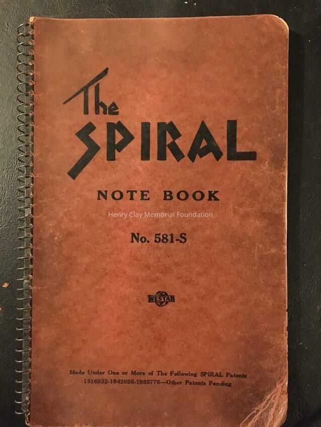 A small booklet with rings. Orange paper cover and black writing.