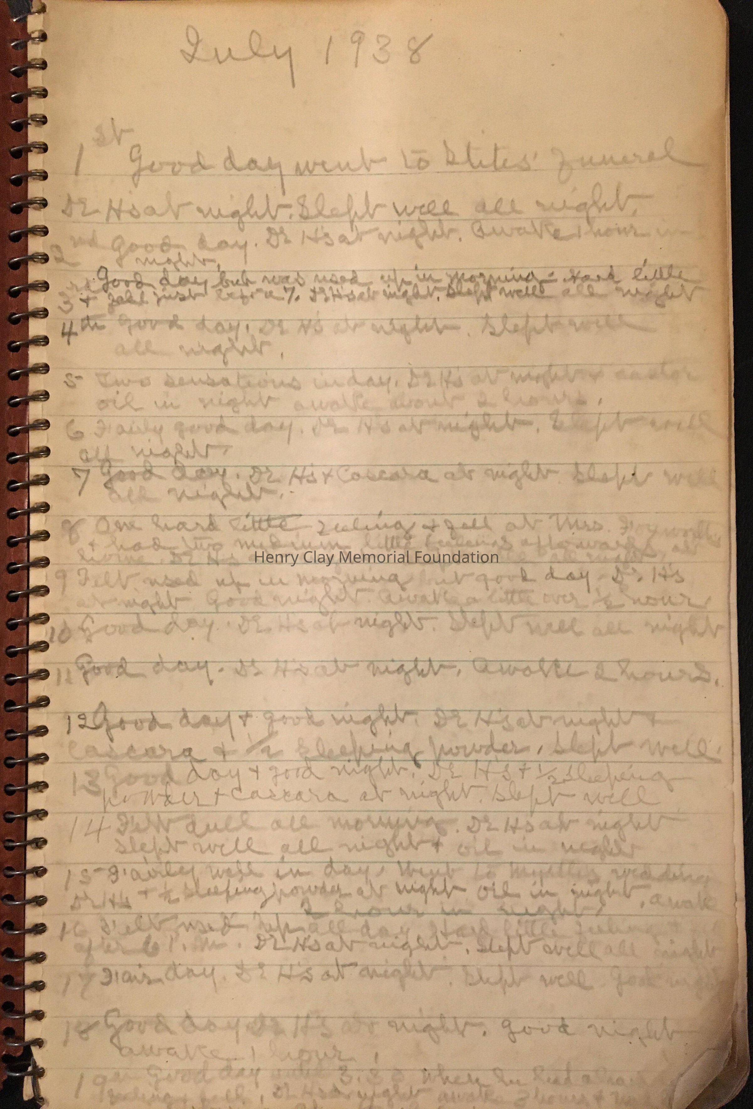 Diary with the first entry being the 1st of july 1938. Inside there are 4 small newspaper clipps.