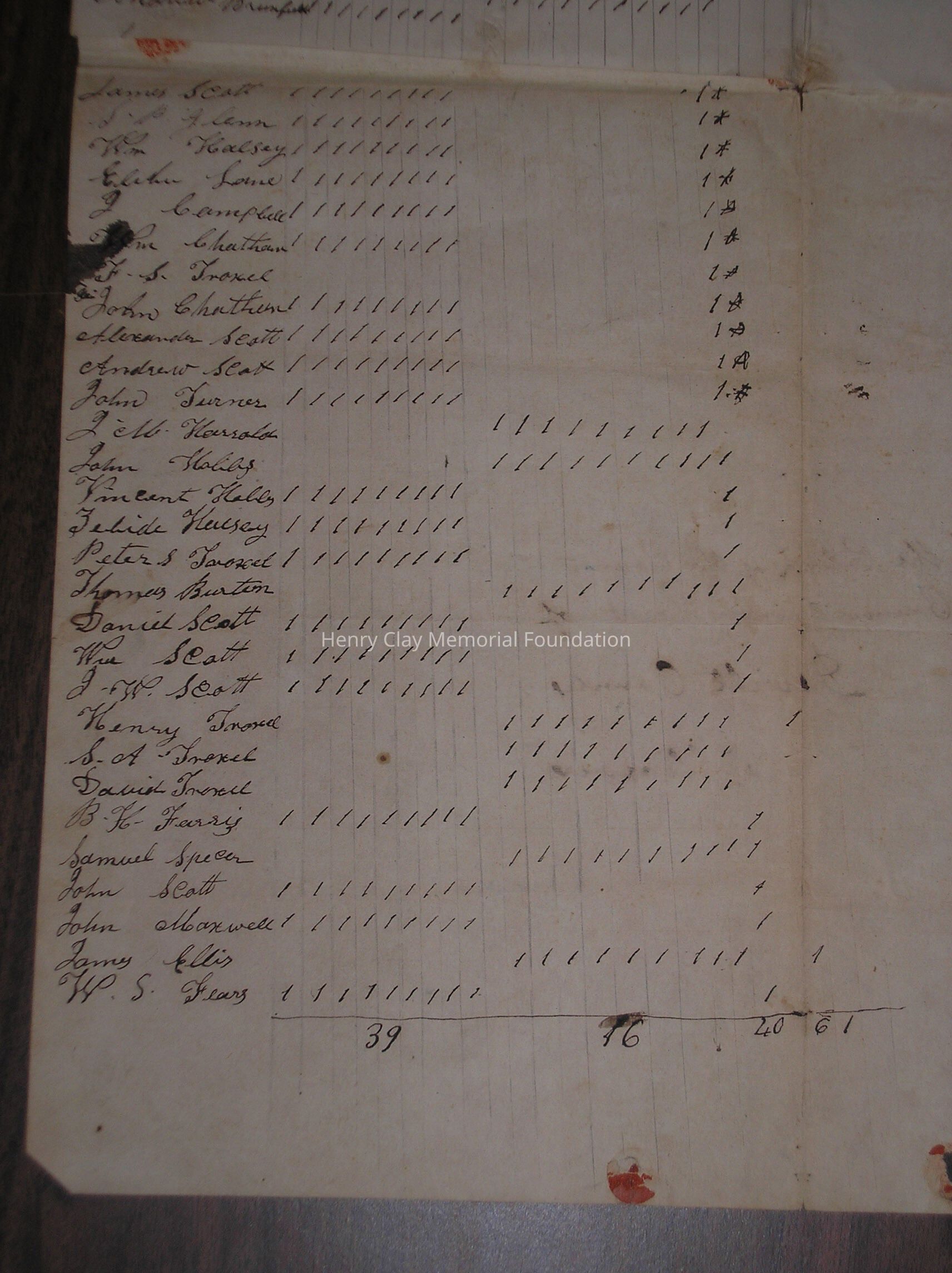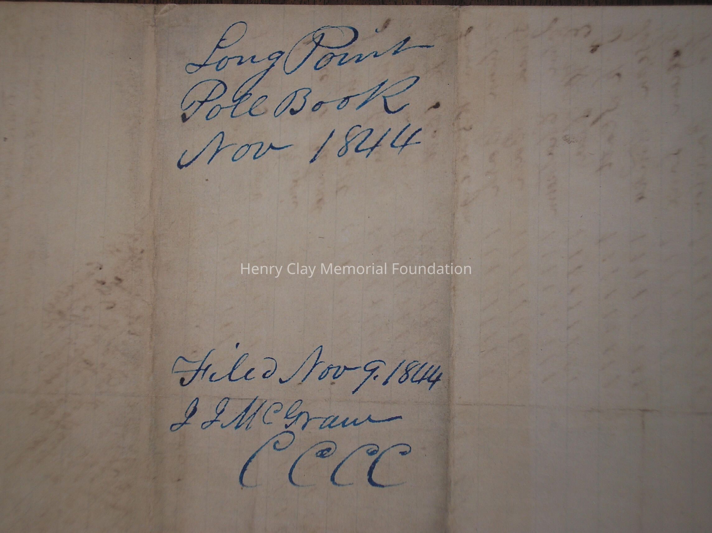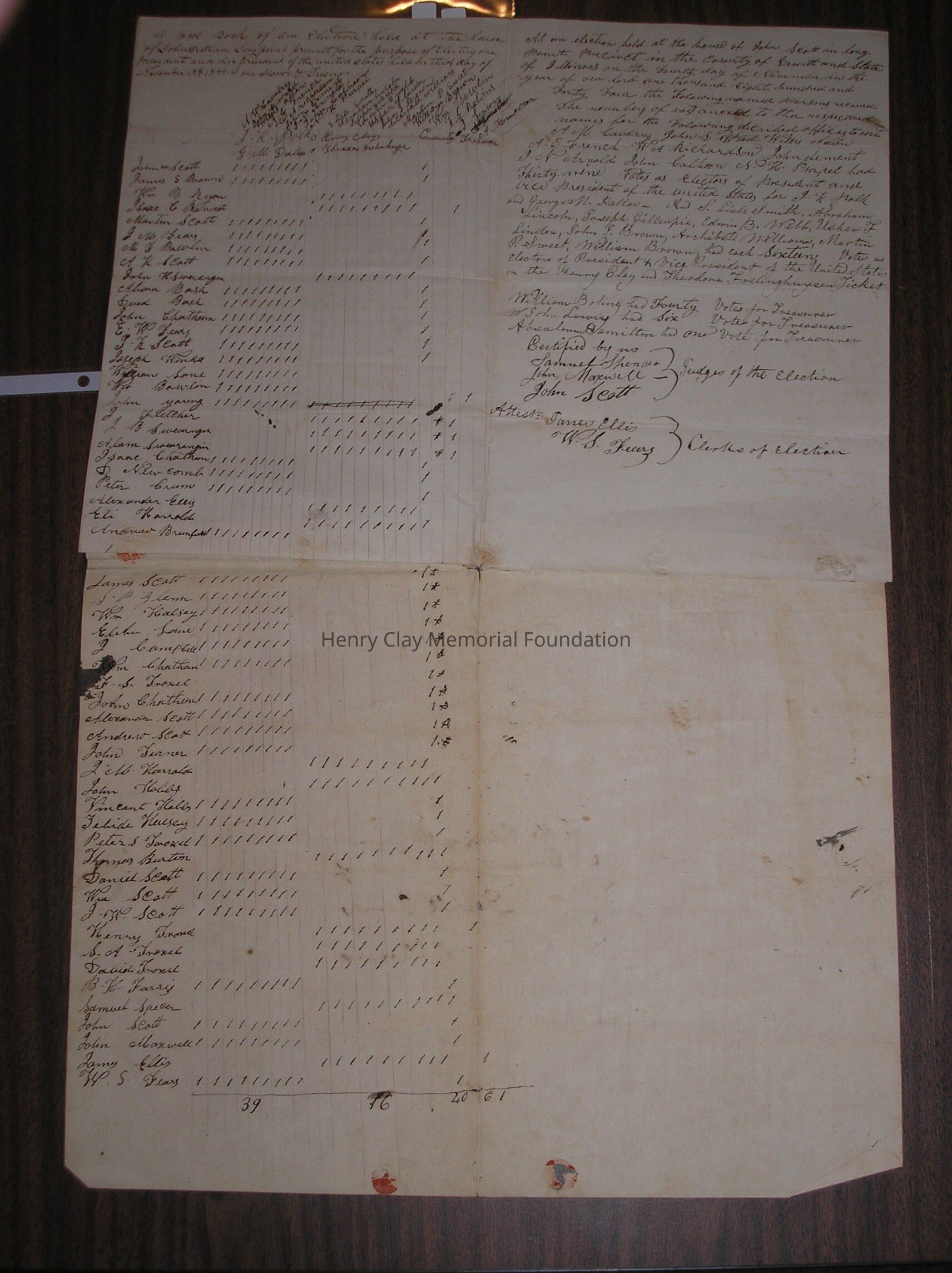 An 1844 Presidential Campaign Precinct document from Dewit County, Illinois showing Abraham Lincoln as an elector and Henry Clay as a presidential candidate.