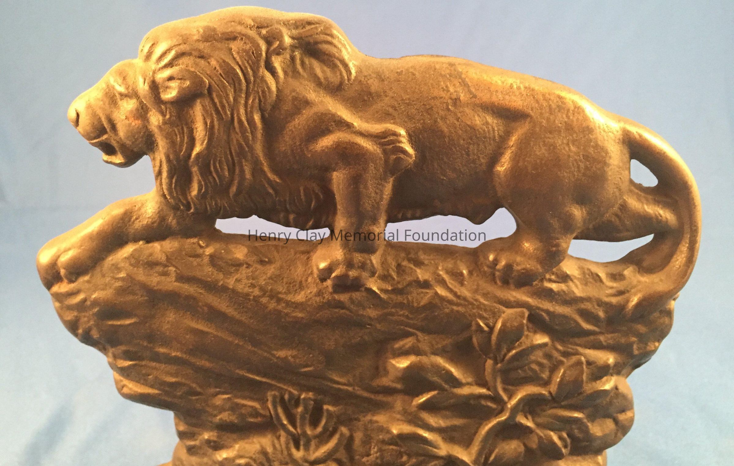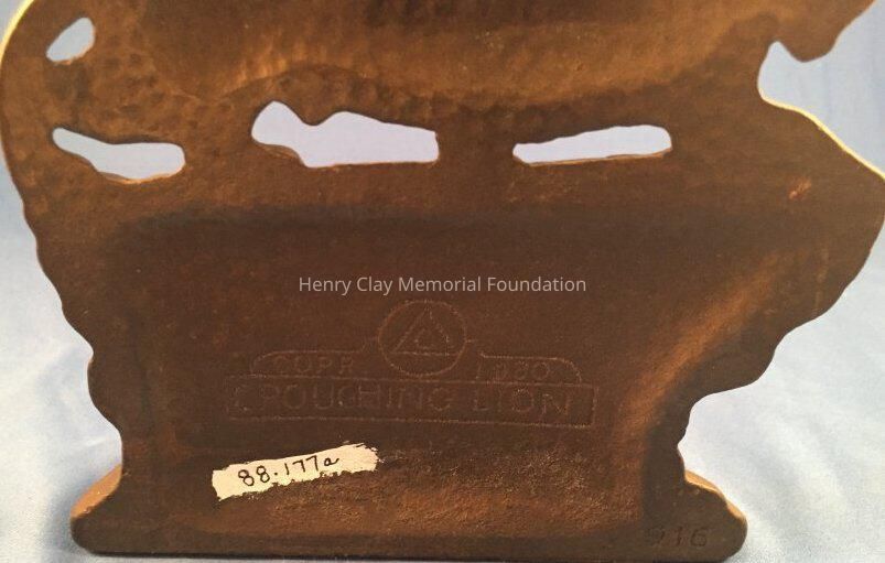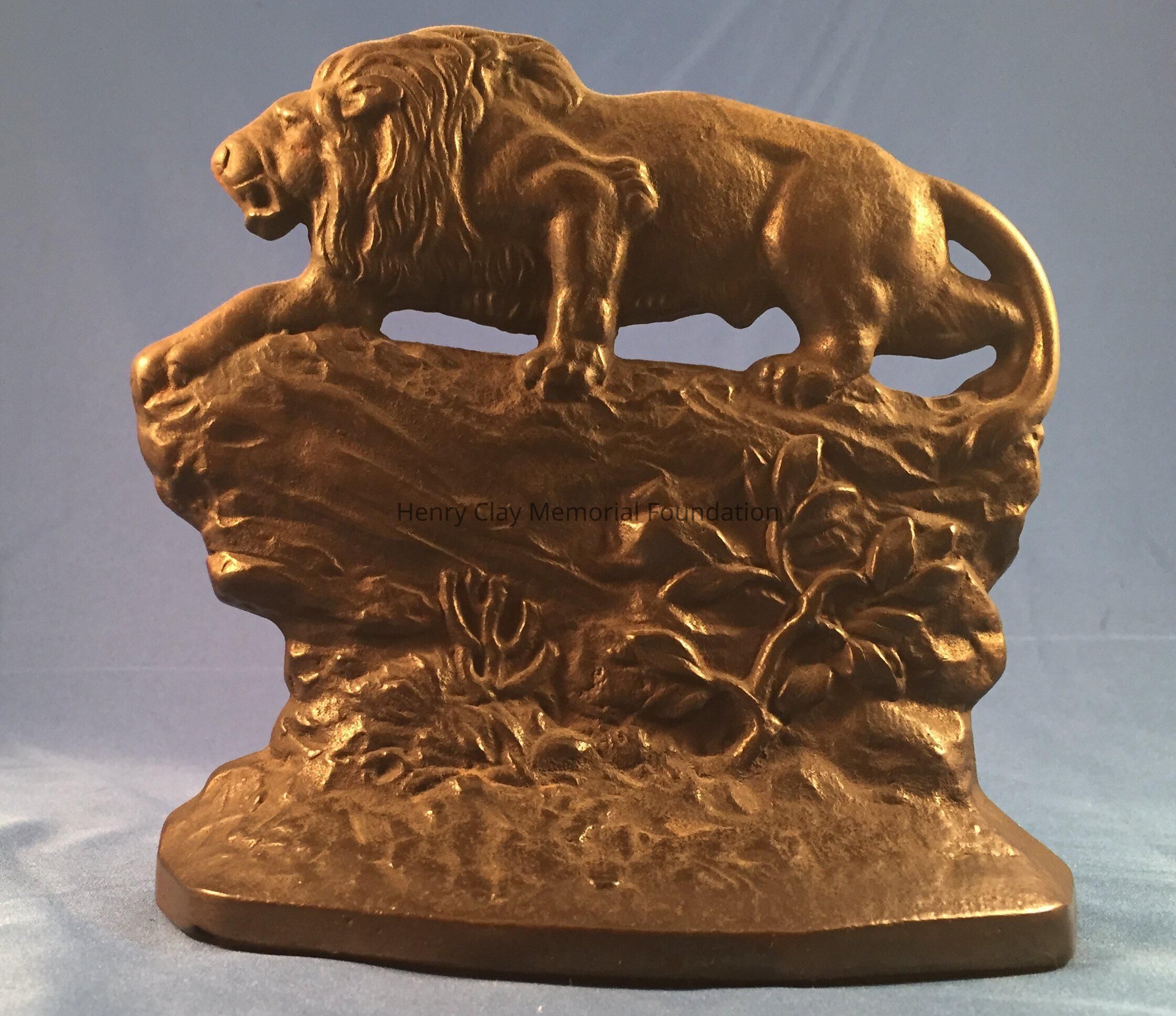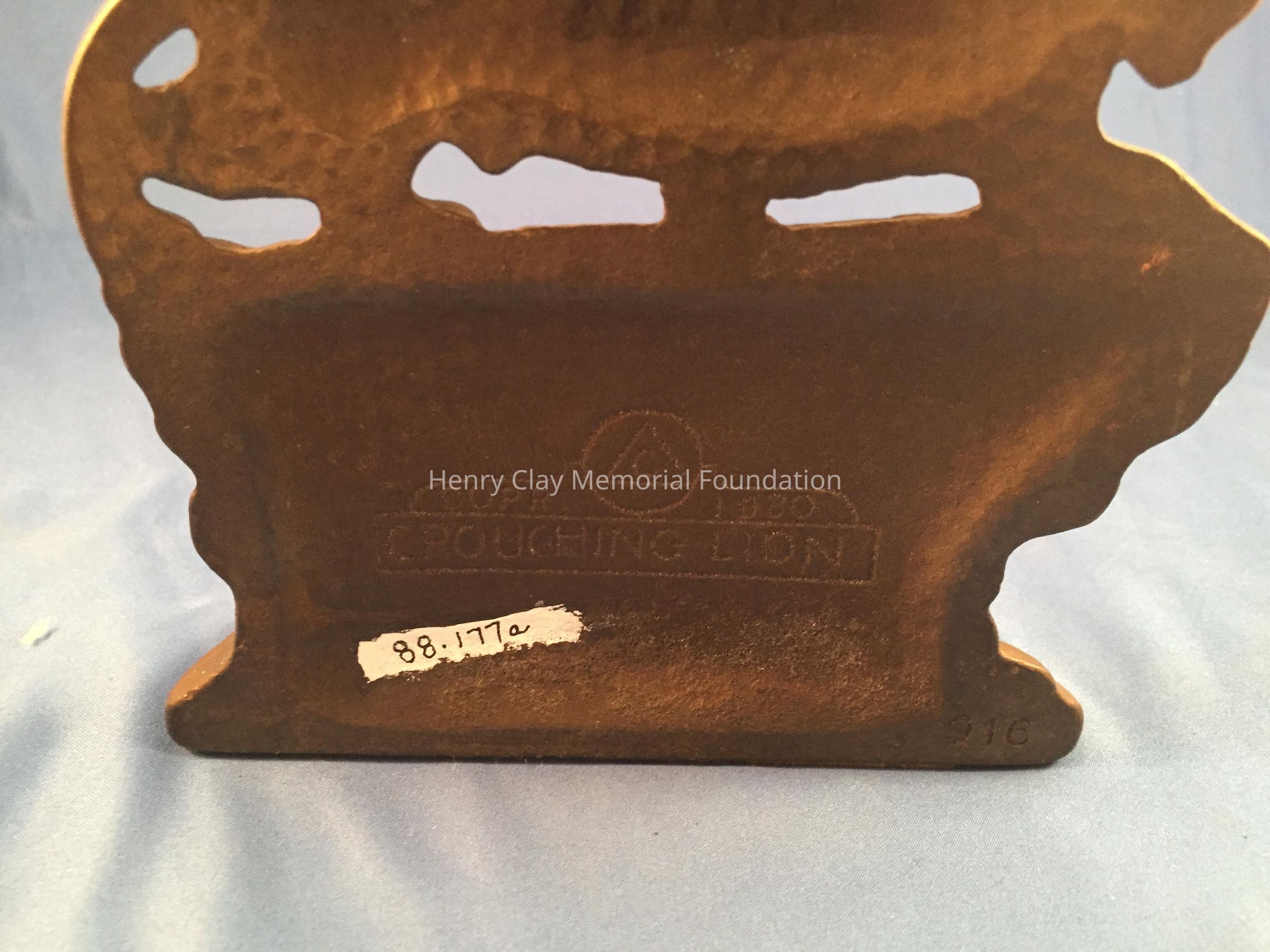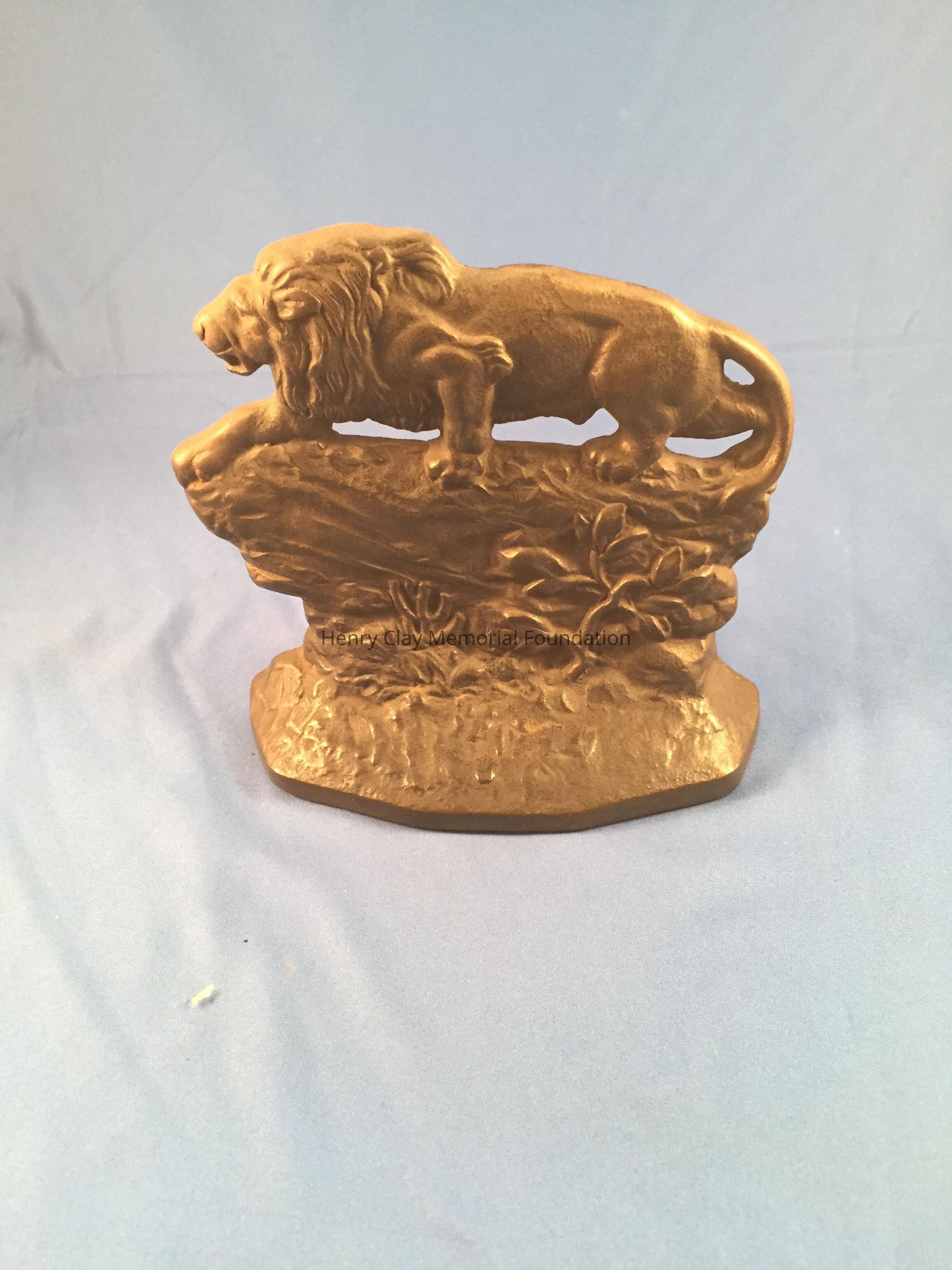 Pair of iron(?) bookends depicting lions. Listed as bronze in 1988 inventory.