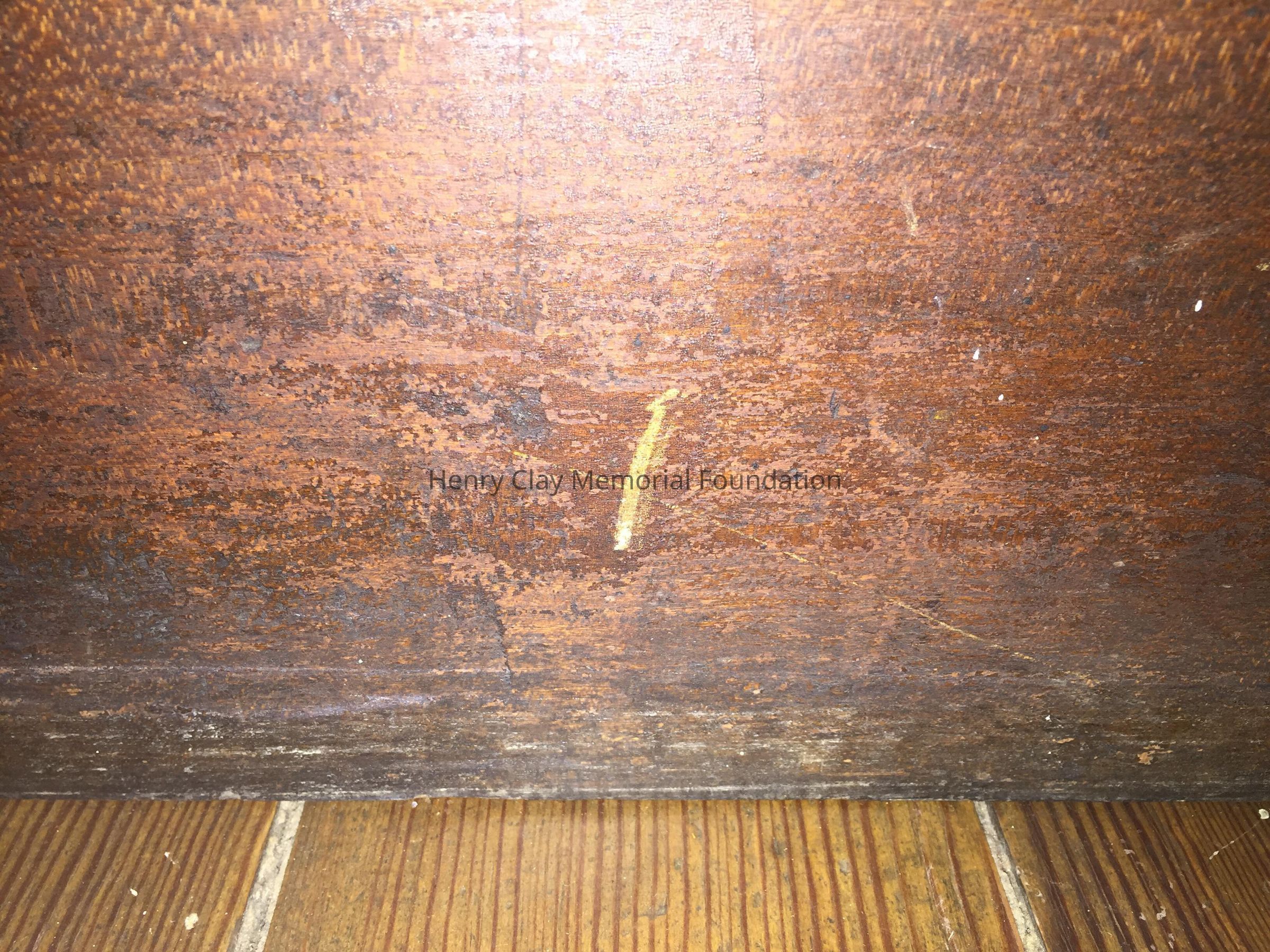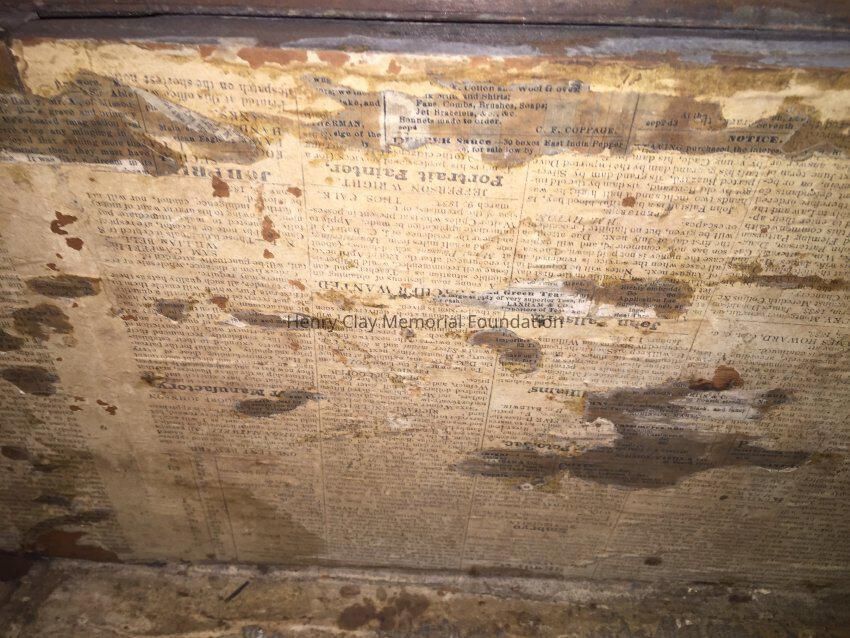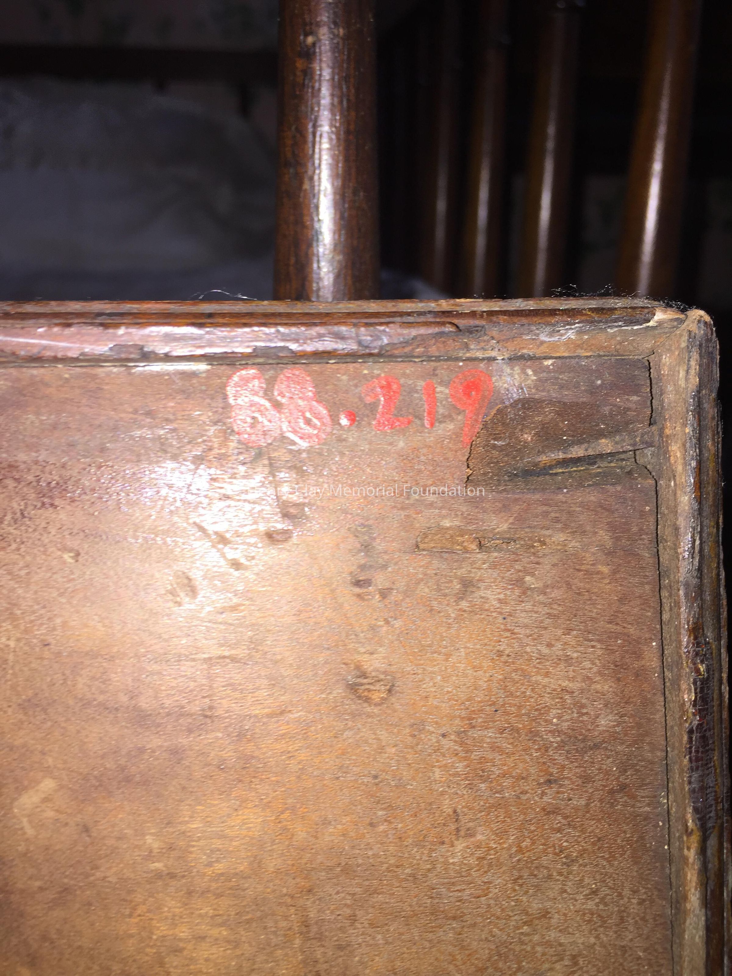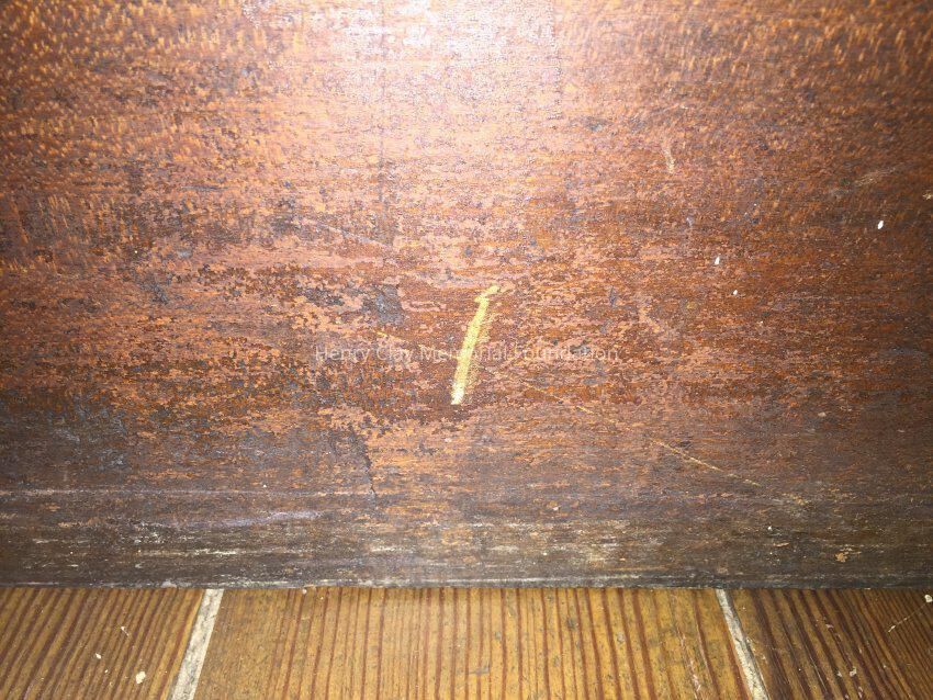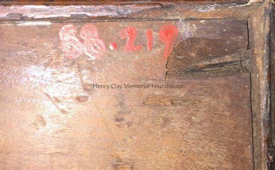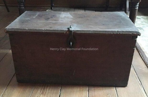 Wooden box, hinged lid, metal clasp, lined with newspaper.