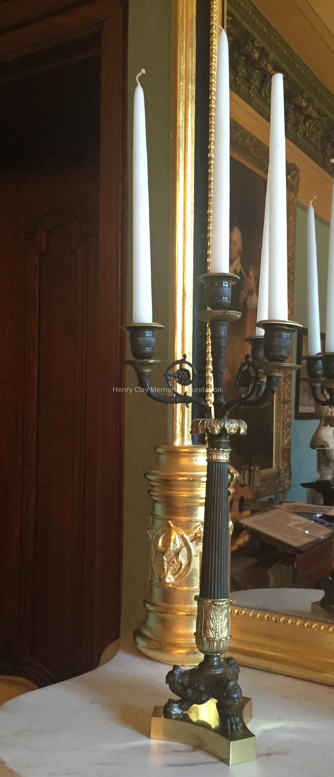 A pair of Empire style, four branch, ormolu candelabra, French, c. 1820.