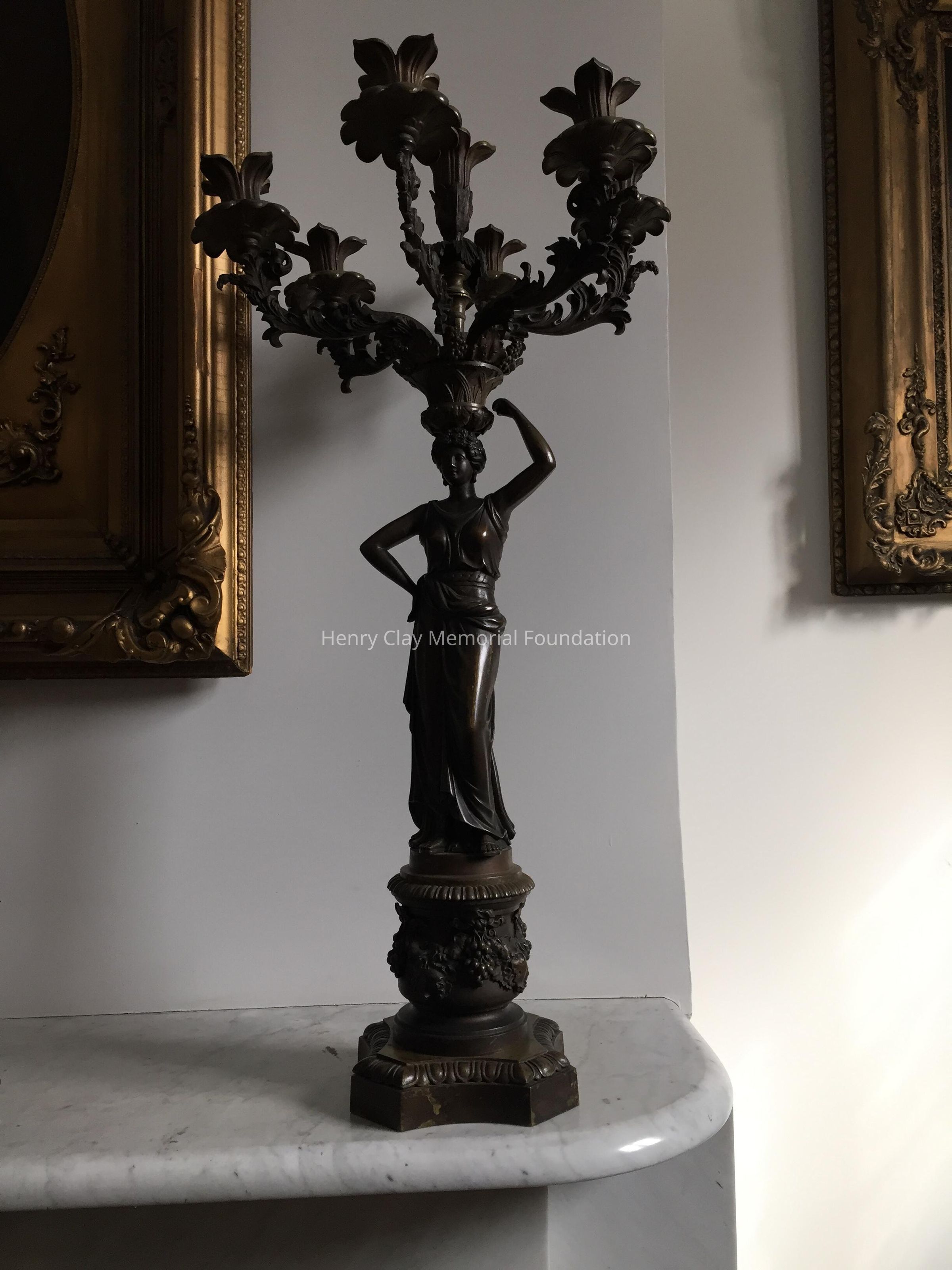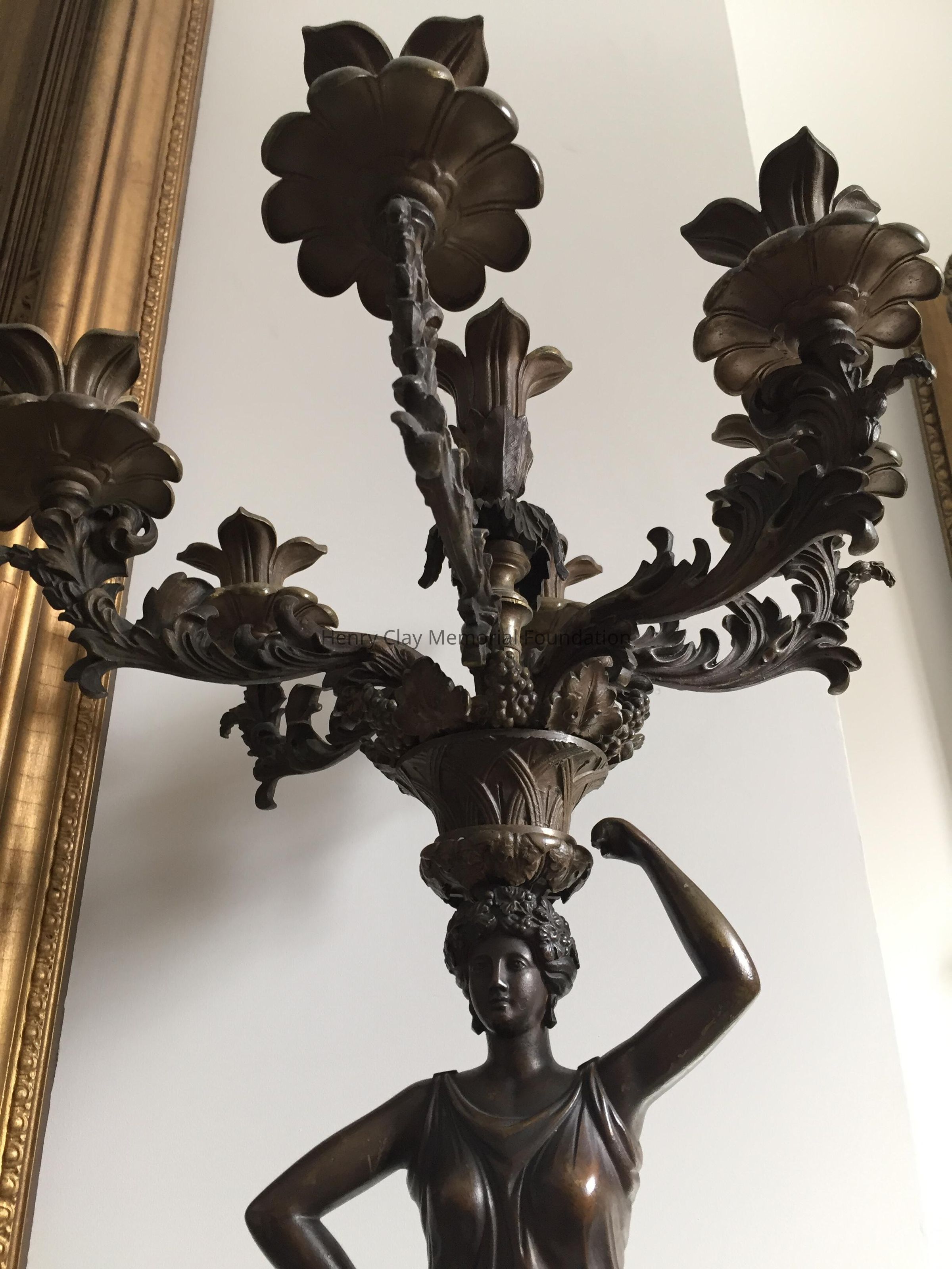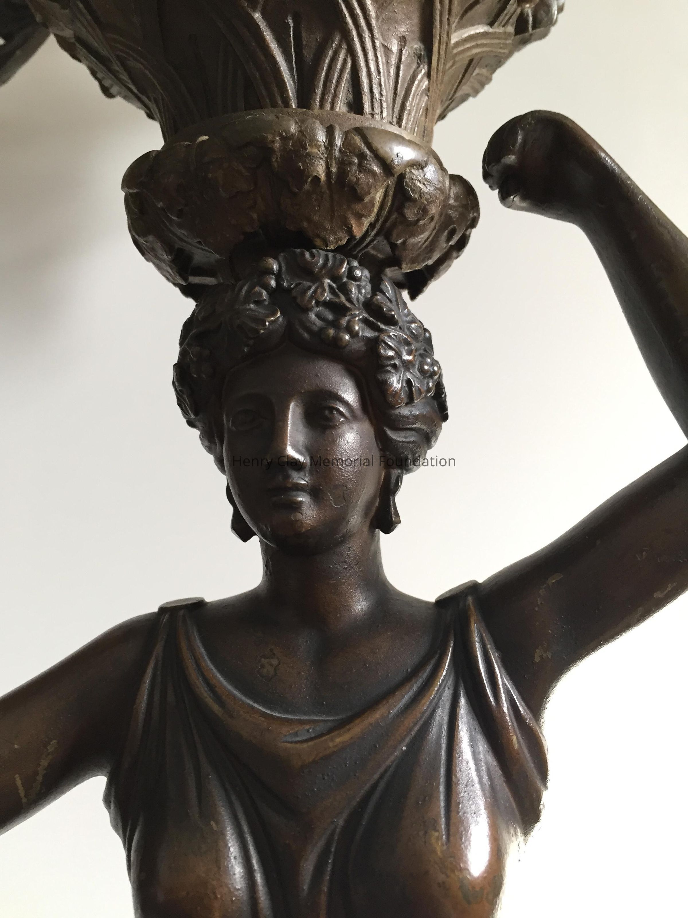 Bronze, classical figure of a woman holding 7 branch light